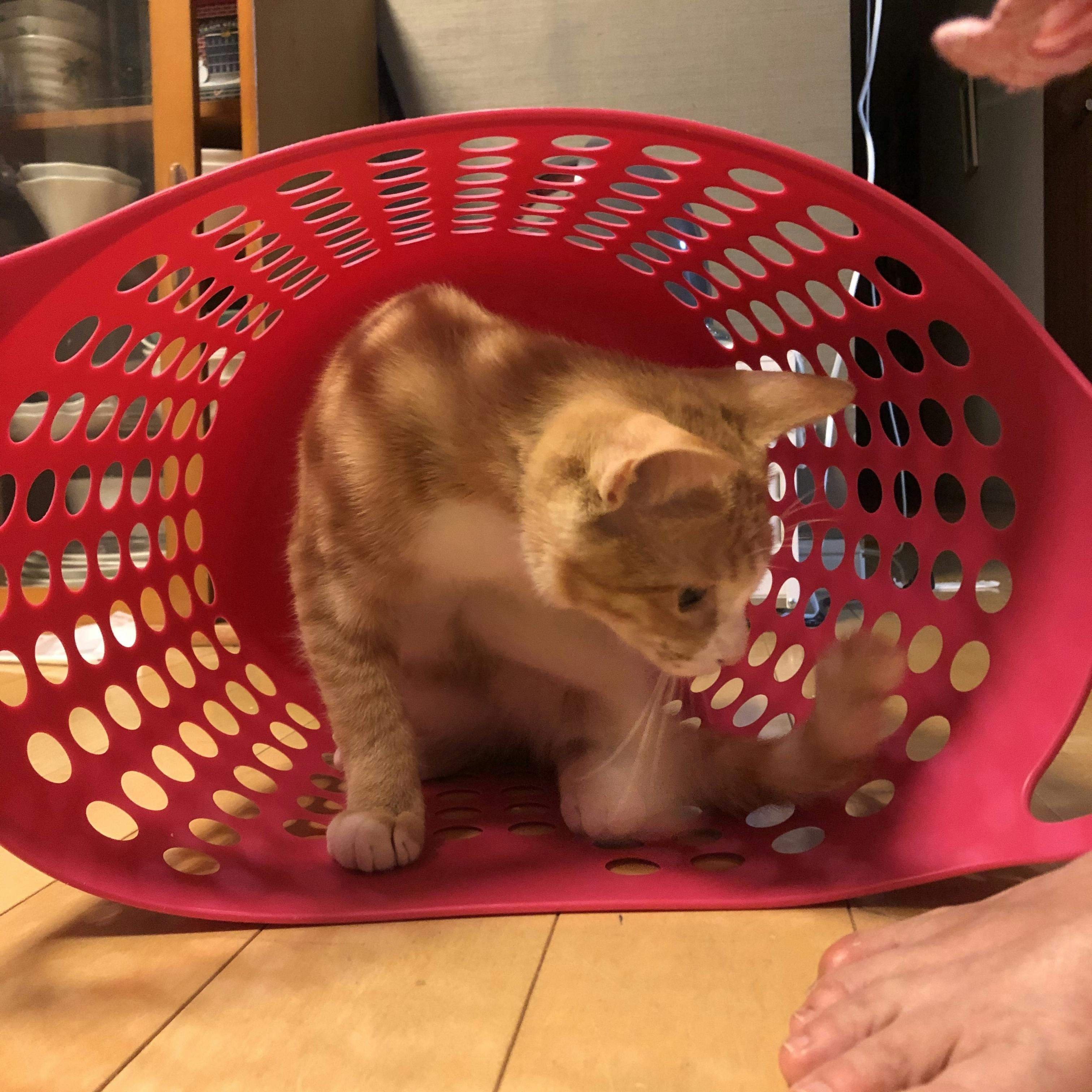トップ画像はカゴの中で遊ぶまめちです。中に入ったまま自分でひっくり返ったりしています笑