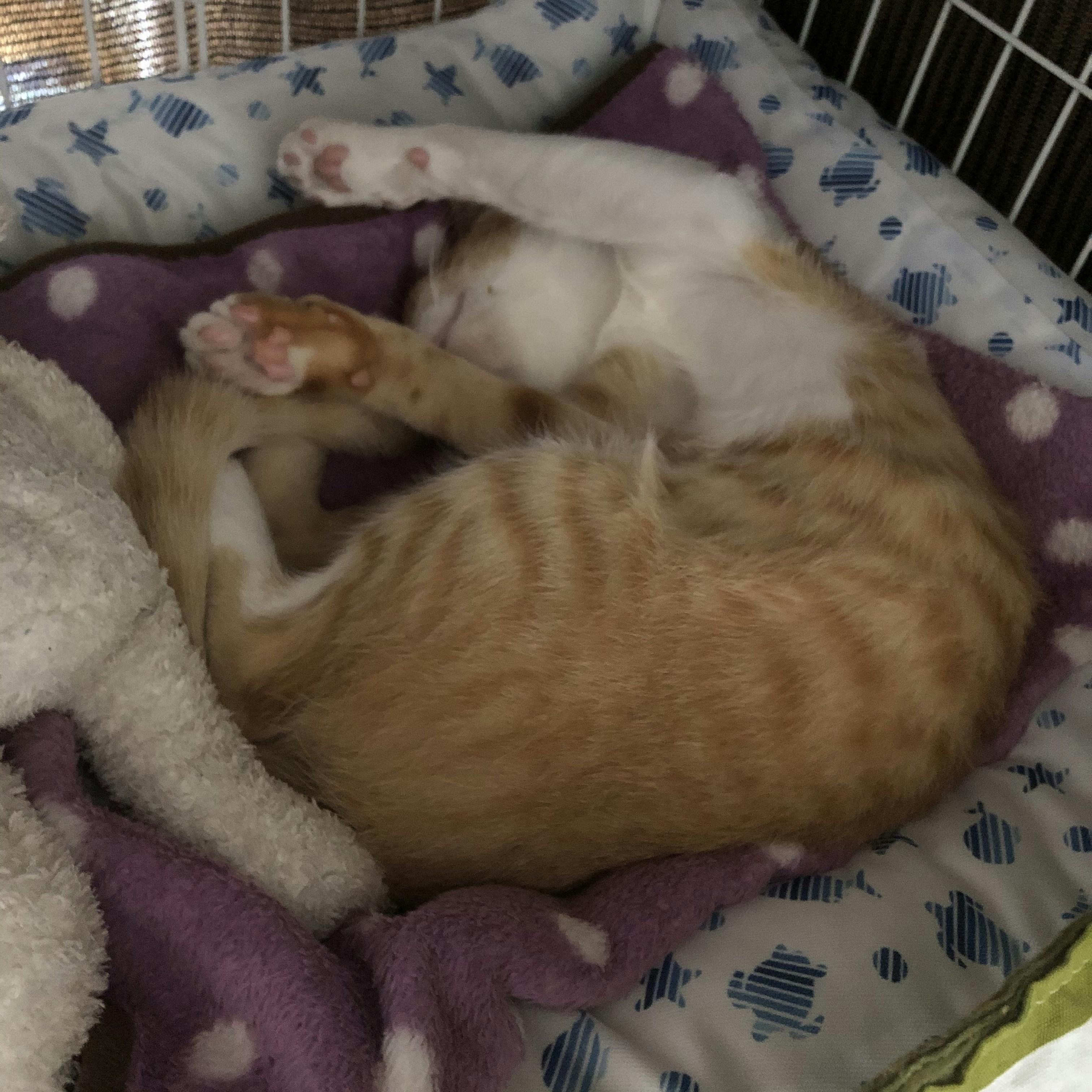 【その他】風邪を引いてしまい、かかりつけの動物病院さんで診て頂きました。症状としては風邪ですが、首のリンパが腫れていると聞きました。お医者様曰く、「風邪をひいているからか、色んなものを噛んだり(まめちは窓枠等色んなものを噛みます)しているから、歯からきているものなのか」という事でした。そのため今日は1日寝ている事が多かったです。ですが玩具で遊ぶ元気はあり、ご飯も沢山食べることが出来ました。また、病院で点鼻薬を処方して頂きました。