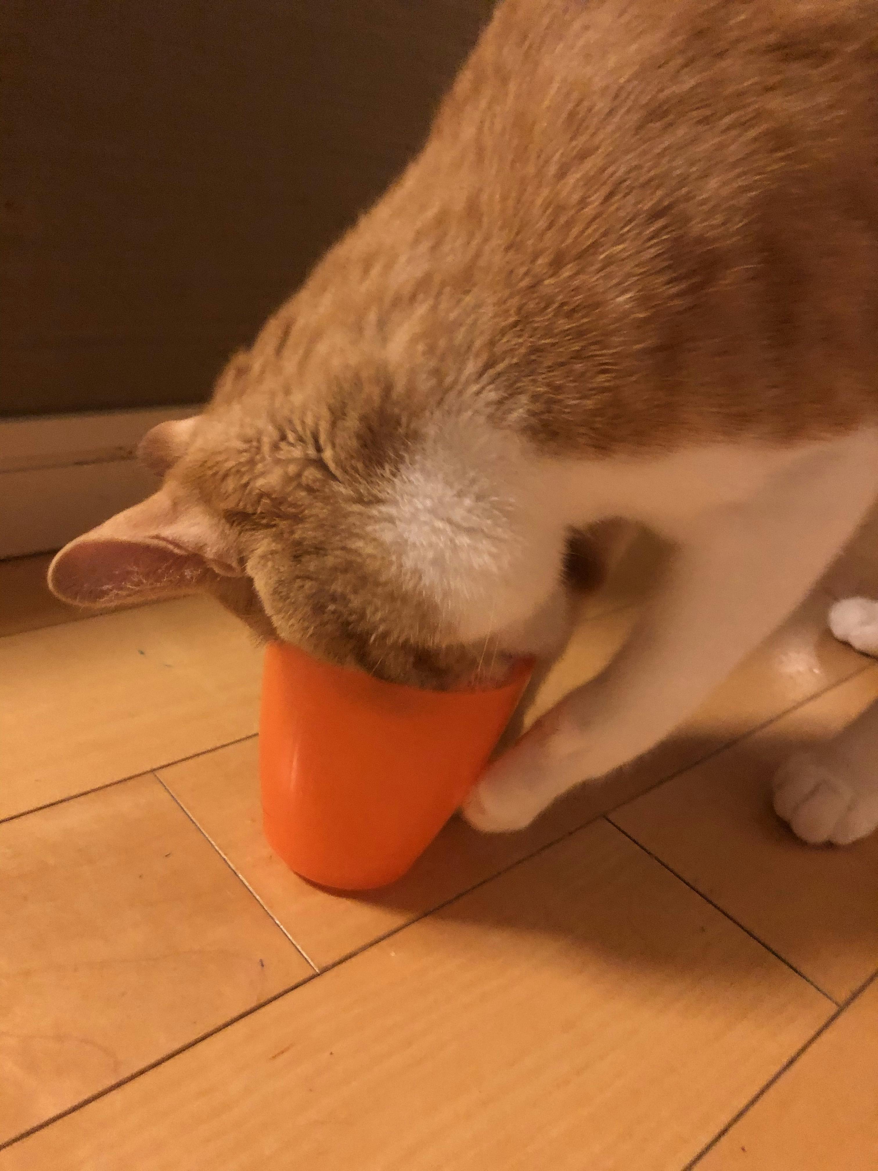 ご飯もしっかり食べ、夜は大好きなコップで遊んでいました。