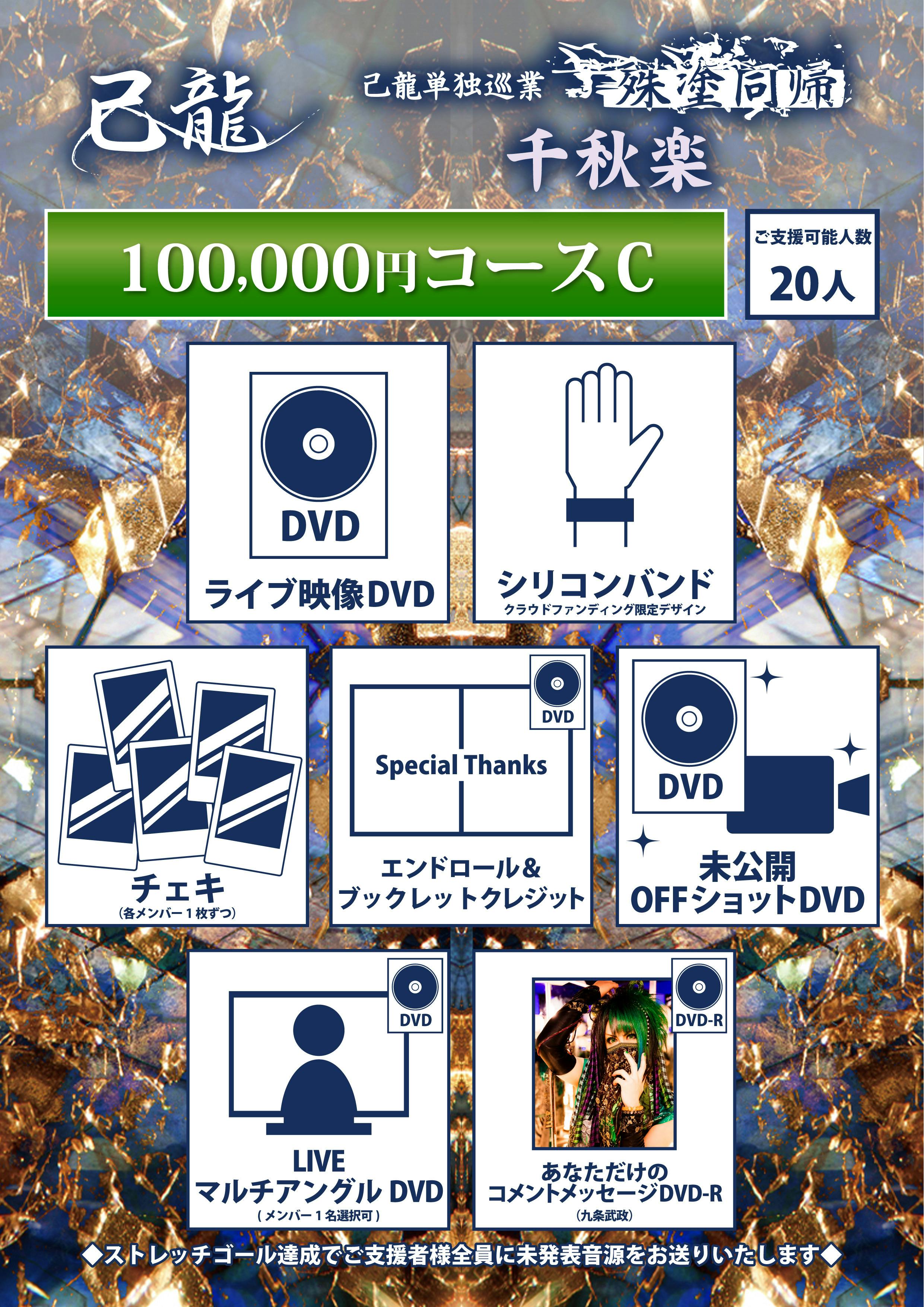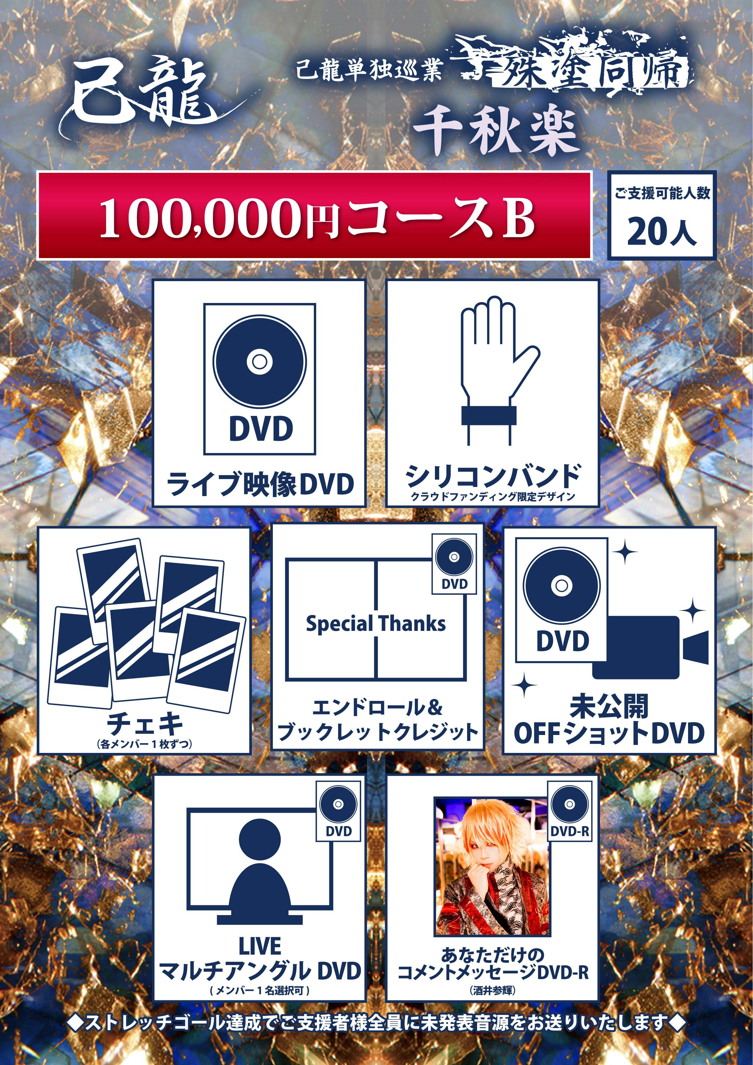 己龍単独巡業「殊塗同帰」千秋楽の無観客ライブ開催費用、そして、この日の公演を、LIVE DVDに収録して残します!尚、このプロジェクトにて制作されたDVDの一般発売の予定はありません。