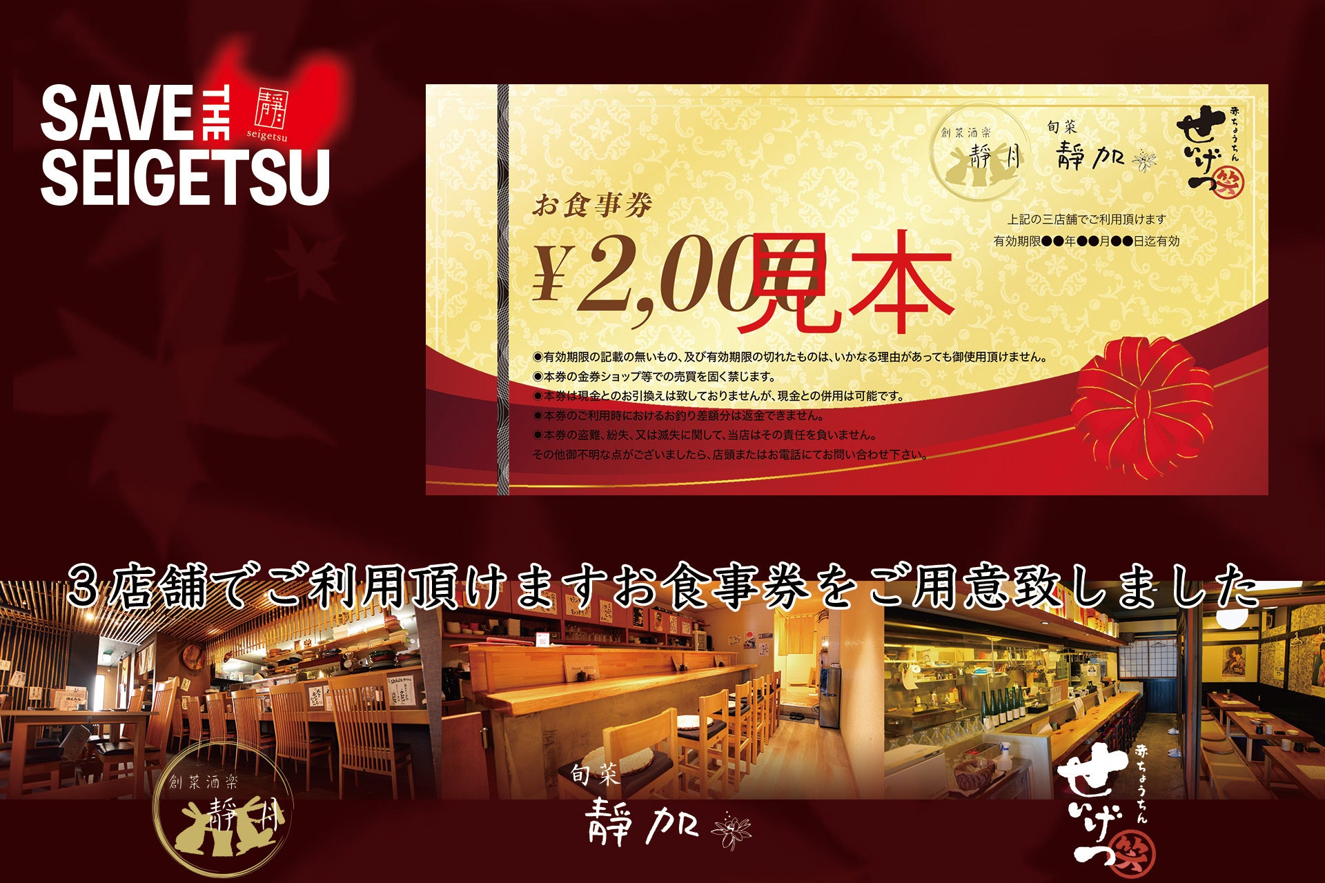 現在は営業自粛中のため全店でご利用頂ける「お食事券」をリターンでお返しさせて頂きます。