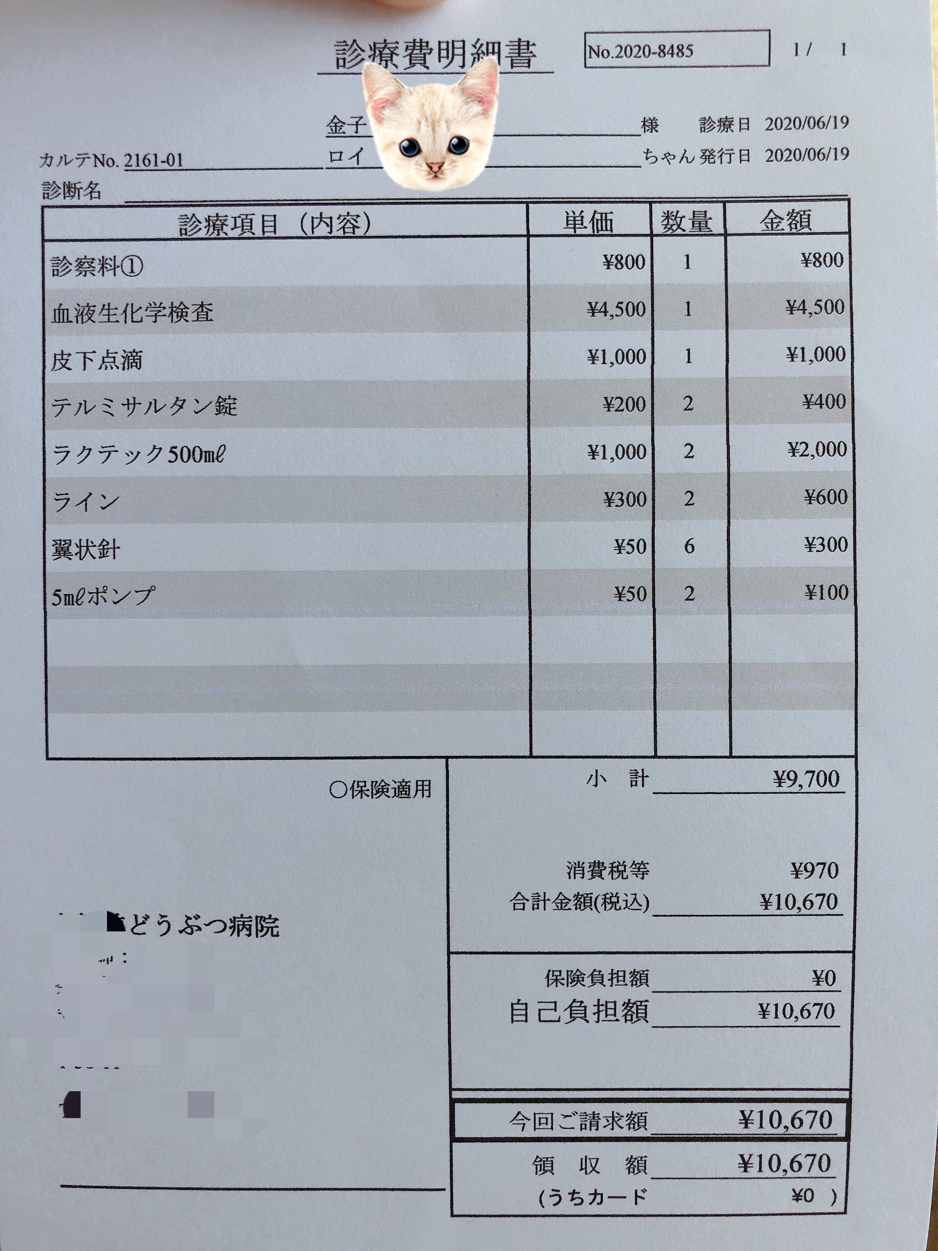 腎臓の薬と点滴の効果が出たようで少し安心しました。