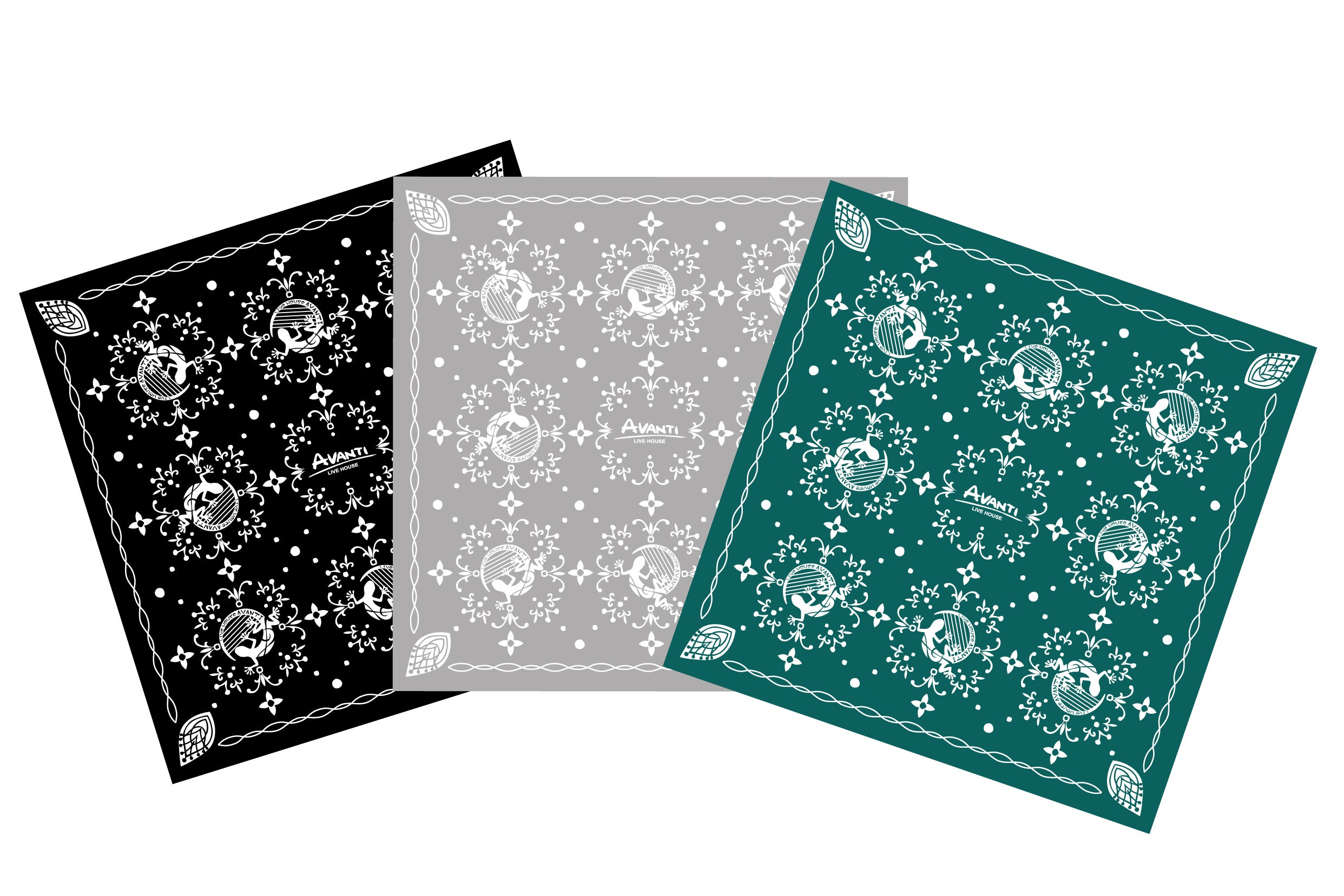 【 AVANTI ロゴ入りバンダナ 3色セット(ブラック / グレー / アクアグリーン)】