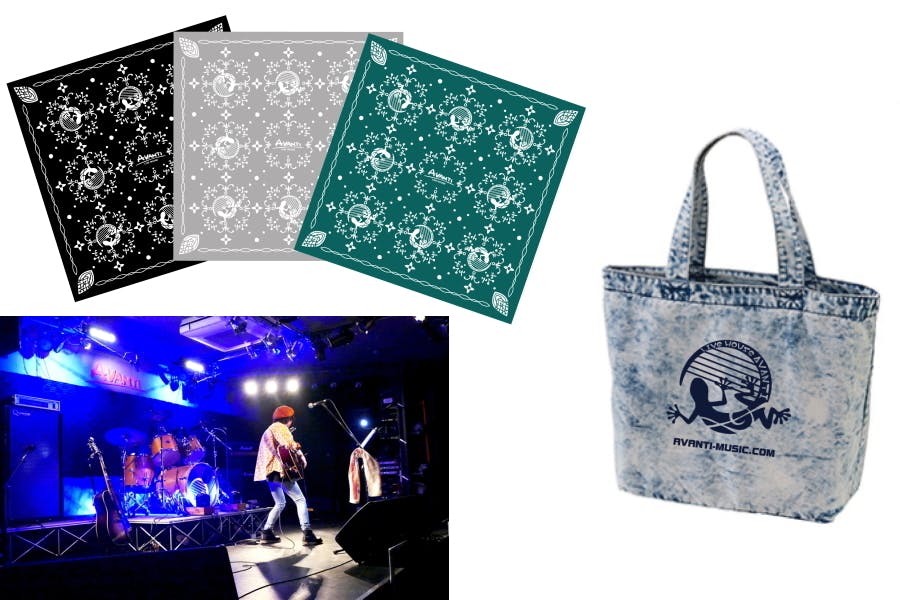 ライブハウス AVANTI オリジナルのロゴ入りバッグをリターンとさせていただきます。