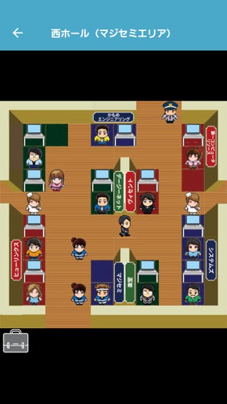 そこから「バーチャル展示会」を選択して参加します。マップ上の移動したいところをタップすれば、キャラクターが自動的に移動します。
