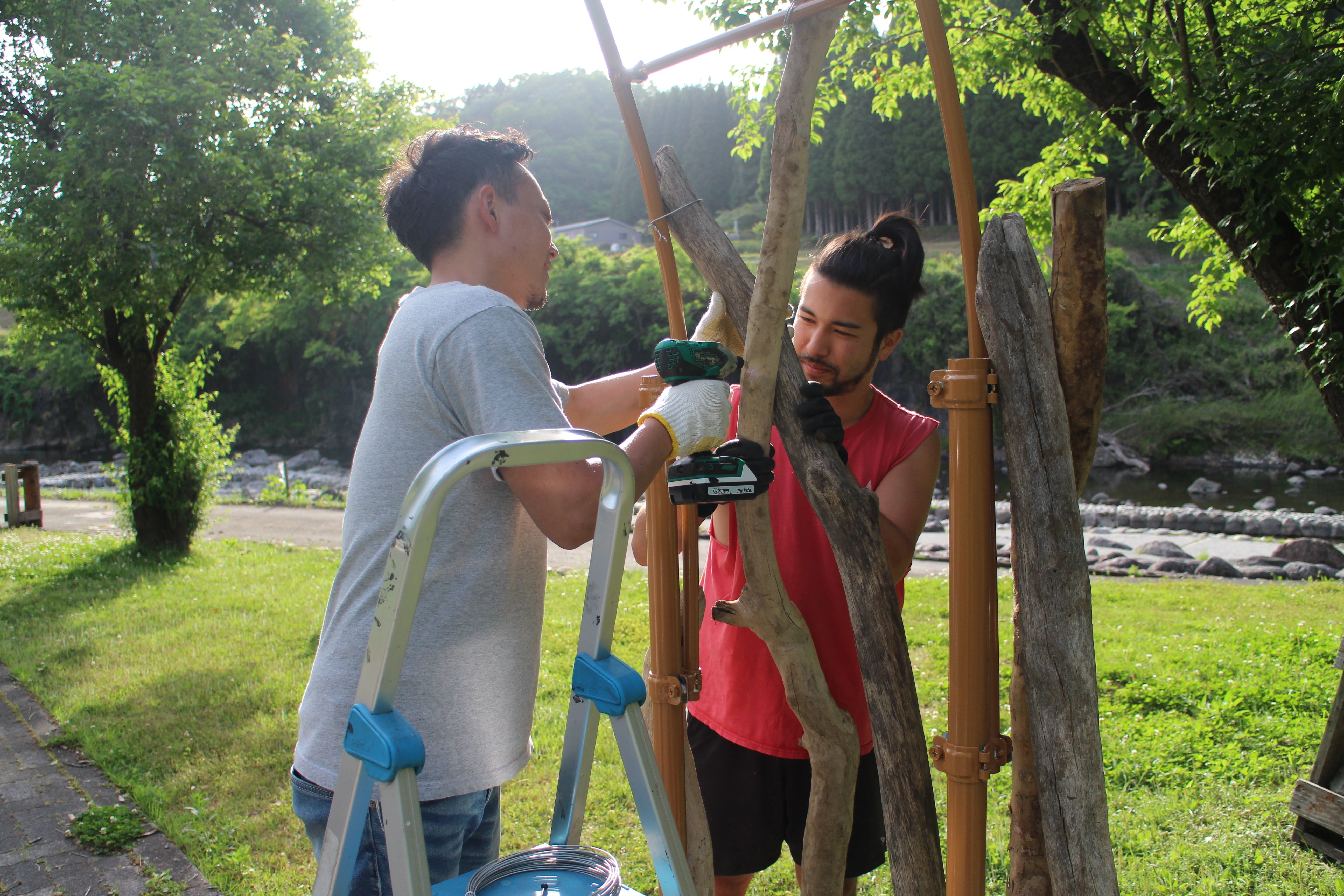 ▶︎ 流木を使ったウェルカムゲートも、ほぼほぼ完成!