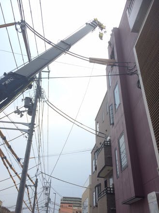 そして、ついにカウンターがきました!!クレーンで4階までつりあげてくれましたーー!!