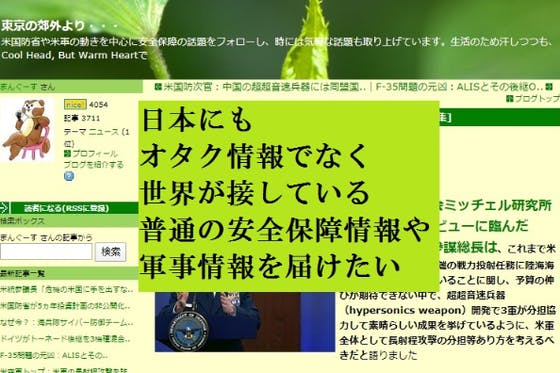 米国を中心とした世界の軍事メディアが報じている、世界の標準的な安全保障情報や軍事情報をご紹介するブログ「東京の郊外より・・・」を支援するファンクラブです。ご支援...