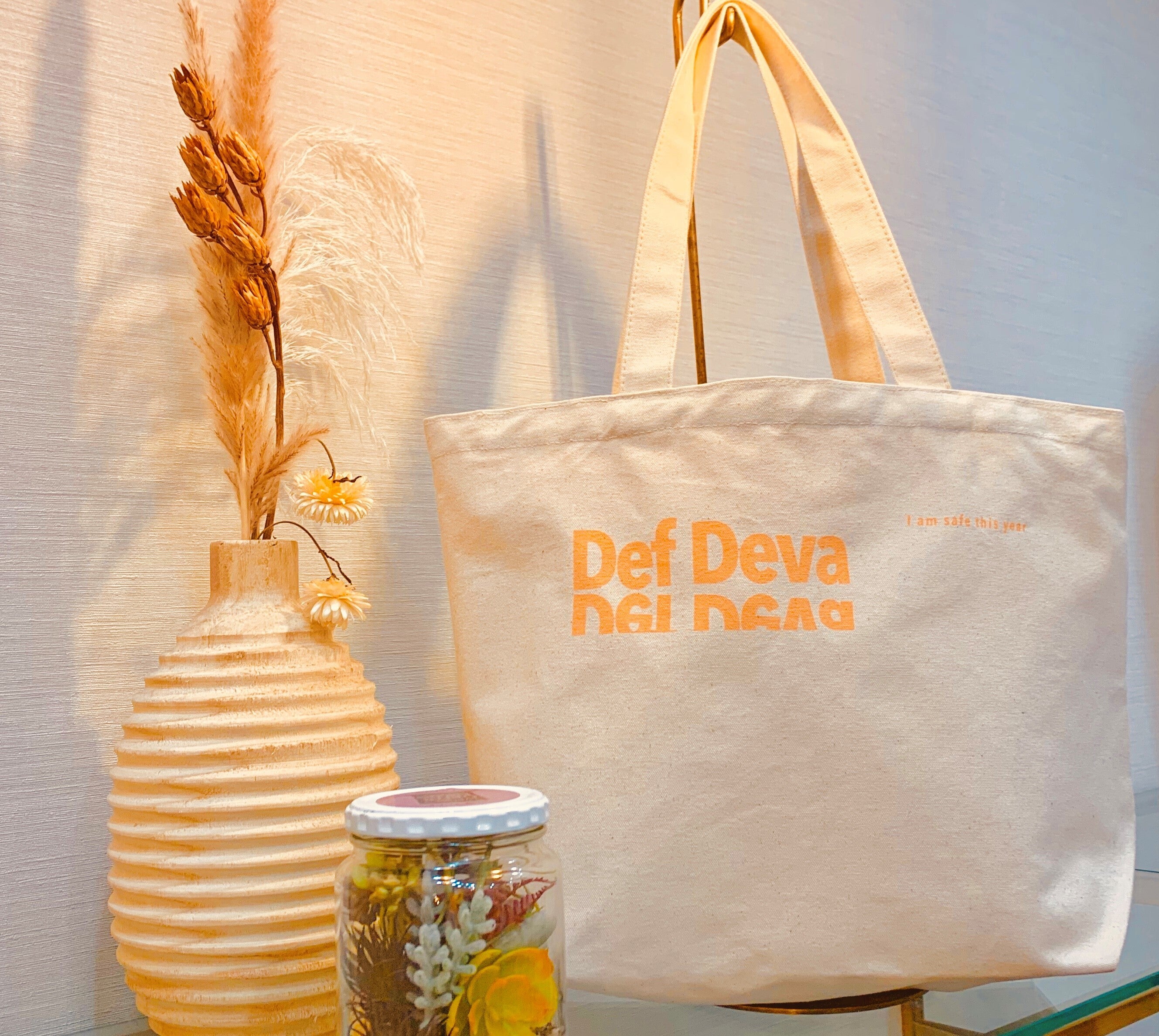 さて、リターンのエコバッグが出来上がりました。しっかりしたキャンパス生地の巾着付きトート。肩掛け可能となります。