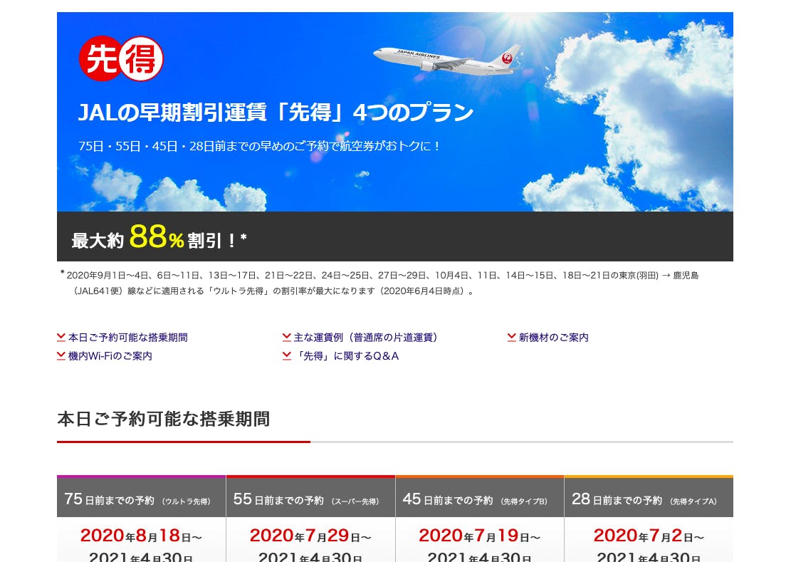 そんな中、JALからウルトラ先得キャンペーンがはじまりました。