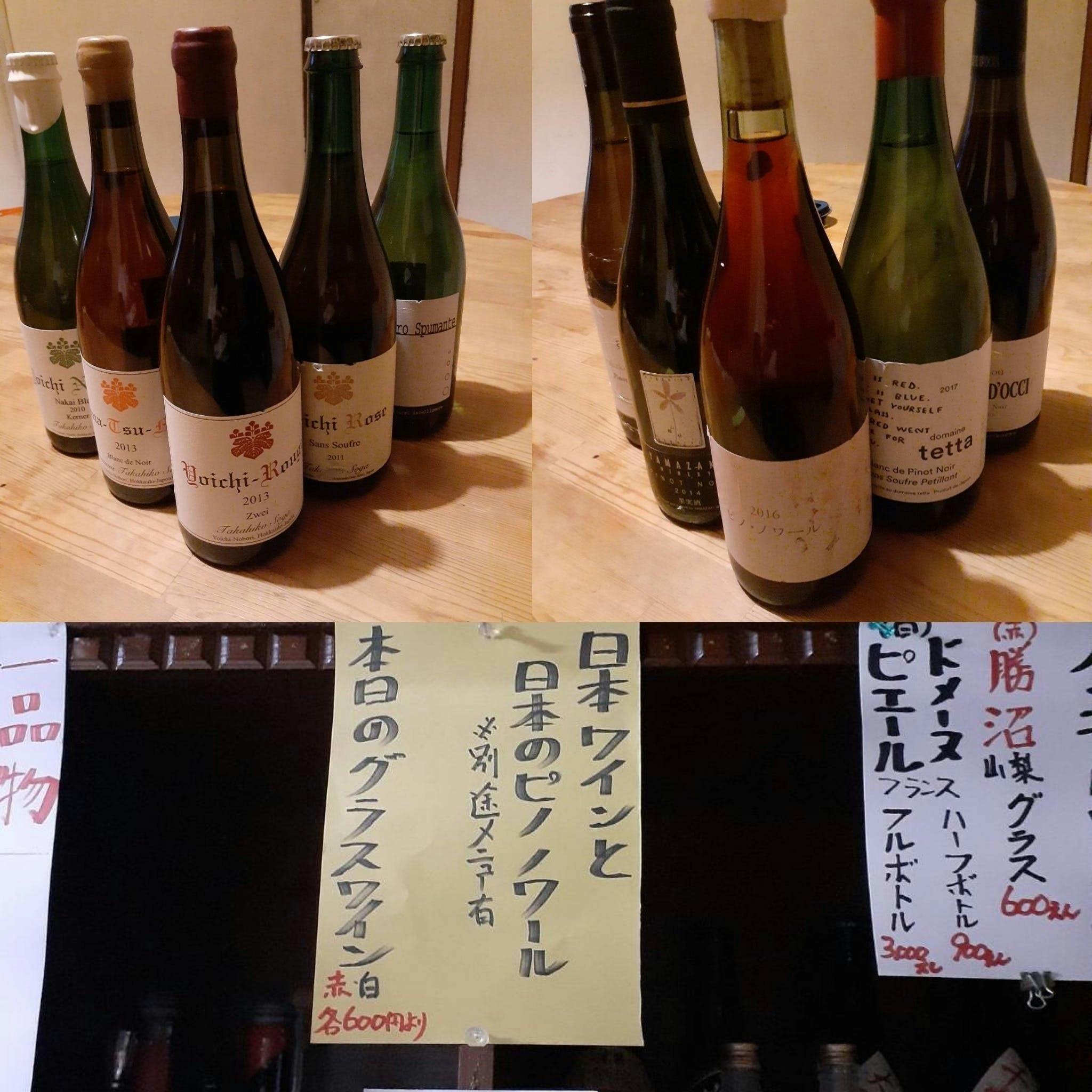 お酒は全国各地の日本酒、日本ワイン、日本スピリッツと全て国産にこだわり日本の良いもの、これからの物を応援したくワイナリー、酒蔵より取り寄せております。