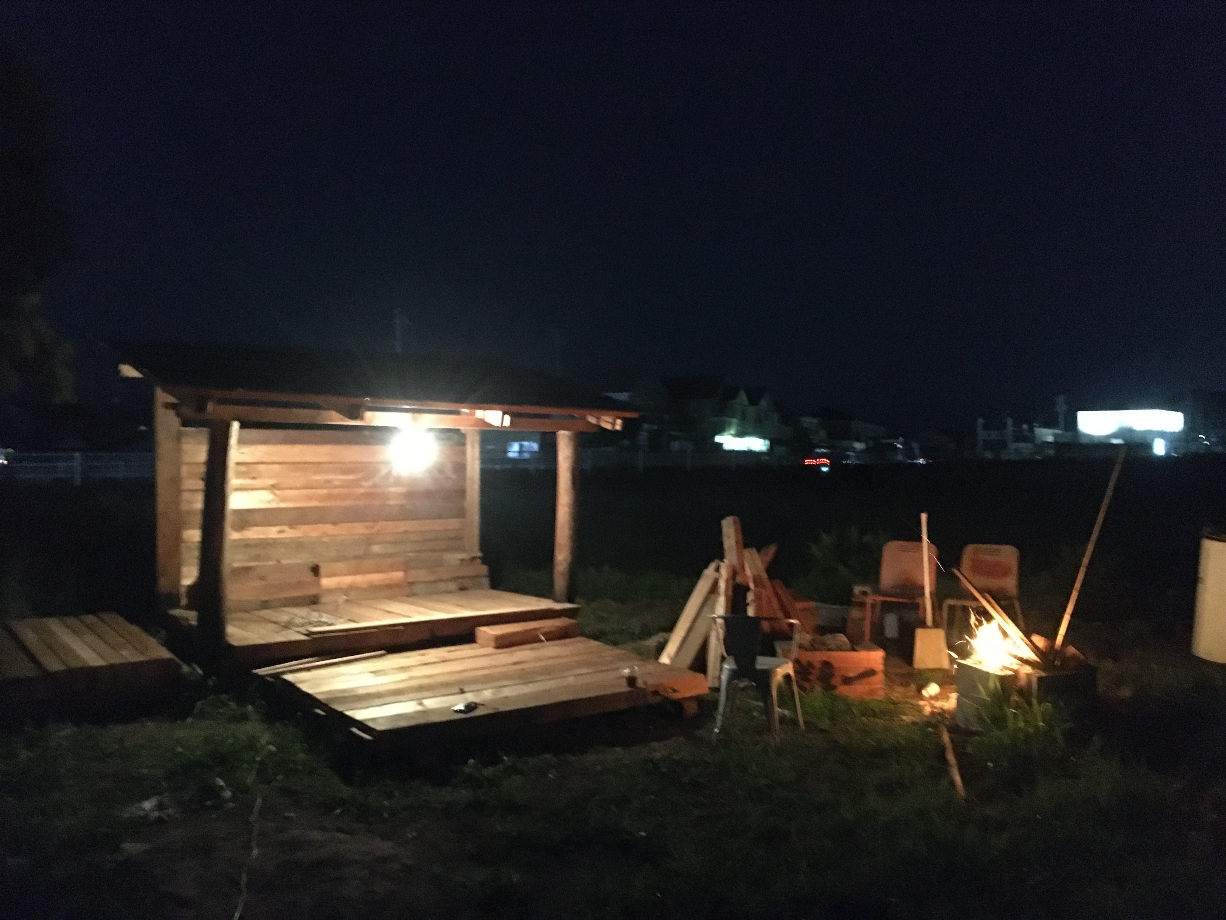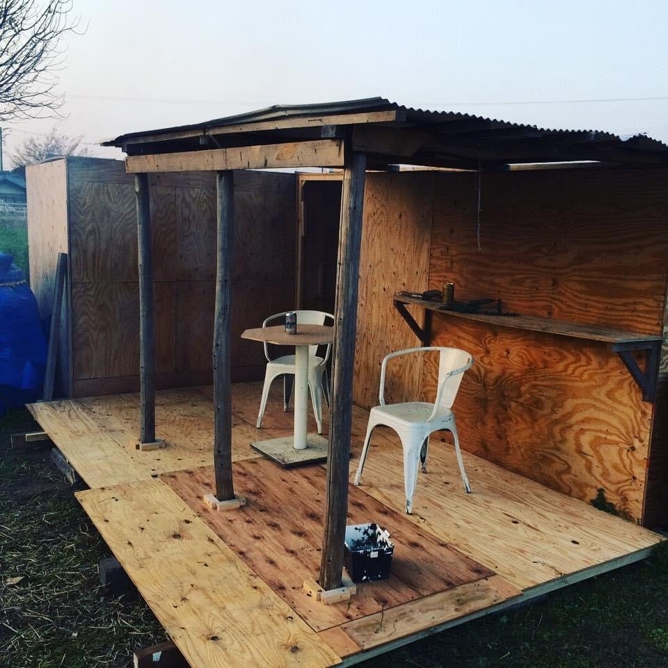 去年夏の台風で休憩小屋が吹き飛ばされ、これを再建築する予定です。どうせ新しく創るならアートコレクティブらしく、農園ミニライブや野外ワークショップなどを主催できる休憩小屋件ステージのような場にしたいです。