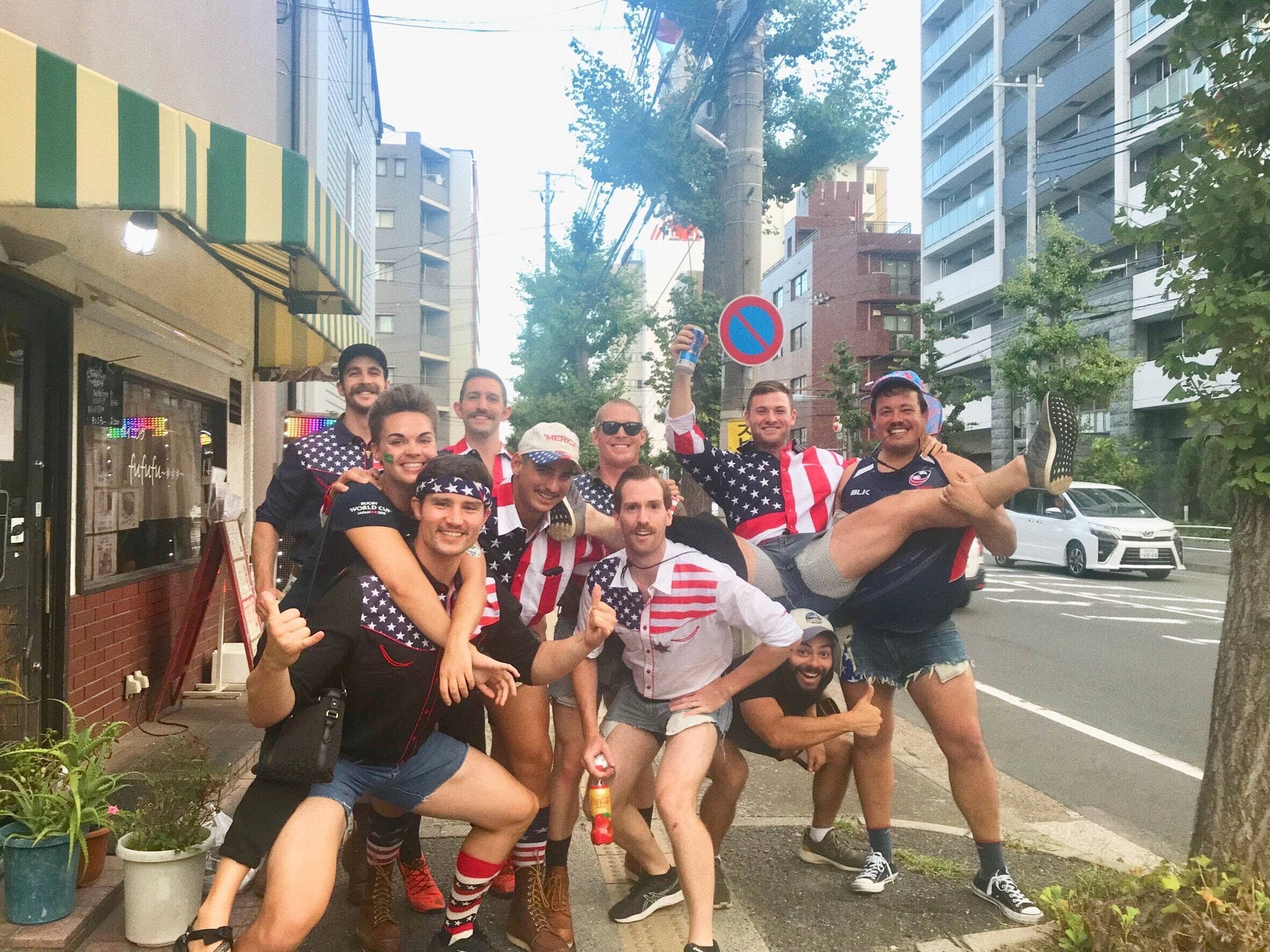 2019年 ラグビーワールドカップで神戸を訪れたアメリカ人サポーターの記念撮影をお手伝い