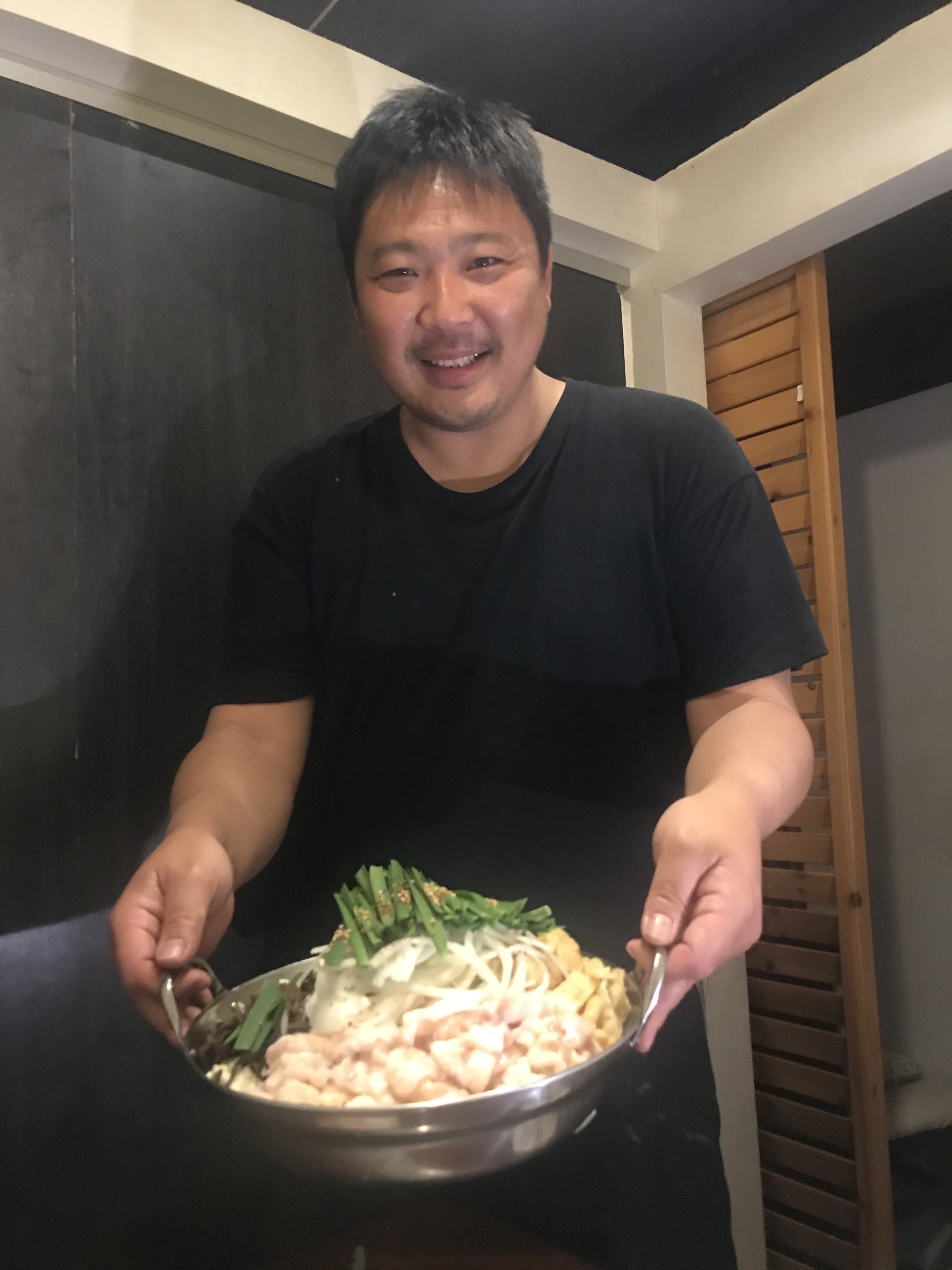 24歳から飲食業界で料理や接客の修行を重ねながらメニューの研究をしたり、お店を持つならこんなお店にしたいというイメージをノートに書き綴ったりしながら2006年に美味しいもつ鍋と創作料理のお店 "楽一" をオープンしました