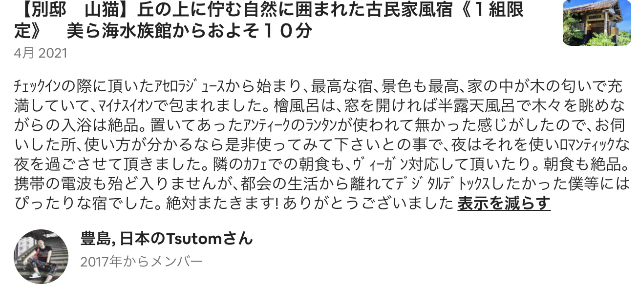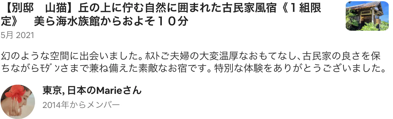 その後、2017年に沖縄本島に移り住み、東京と沖縄で一棟貸しの宿を始めました