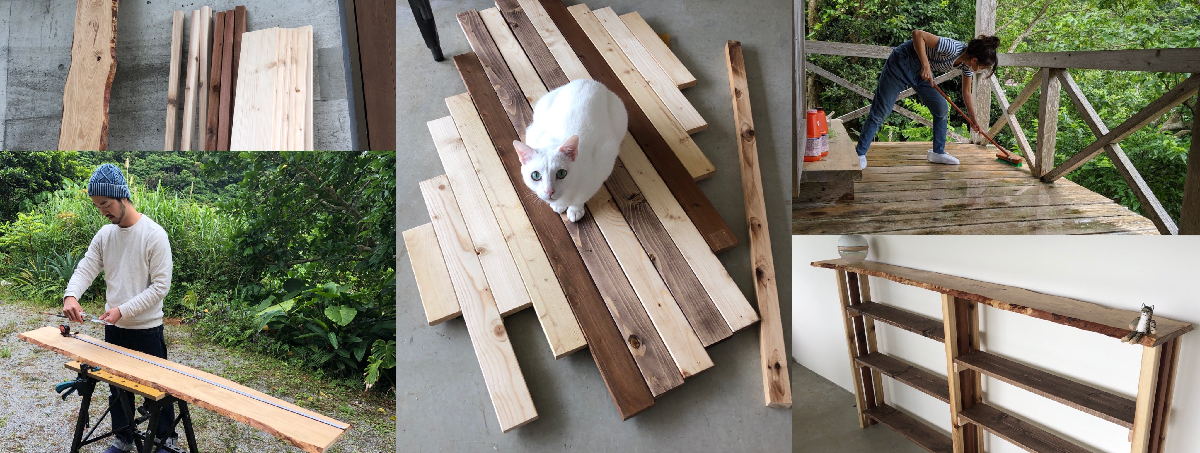 経費削減のために自分たちでカフェの本棚を作り、宿の補修をしました