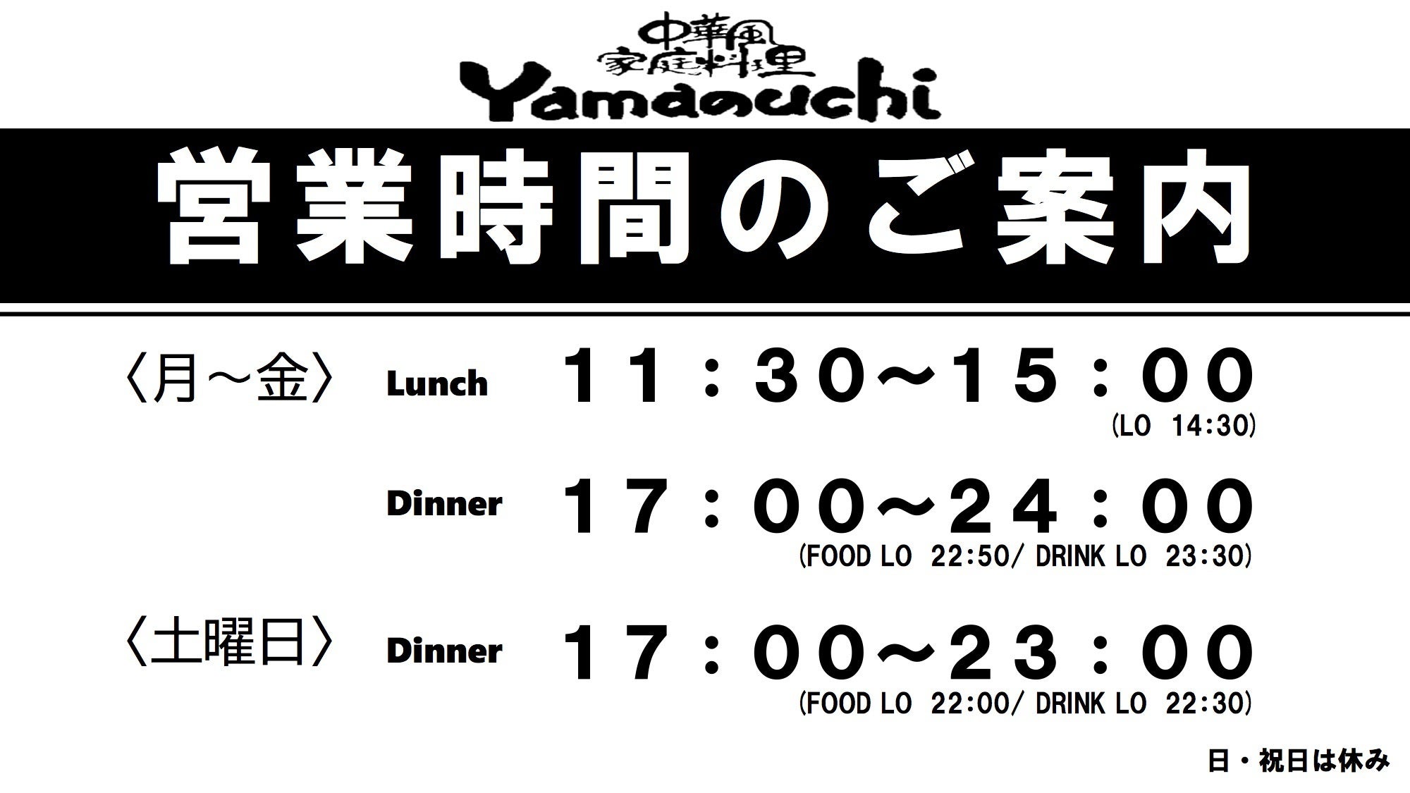 引き続き「中華風家庭料理Yamaのuchi」を温かく見守っていただけると幸いです。