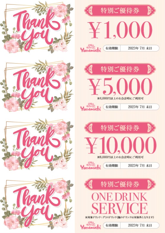 ➡ 36,000円分のお食事券 + ワンドリンク券 × 4枚