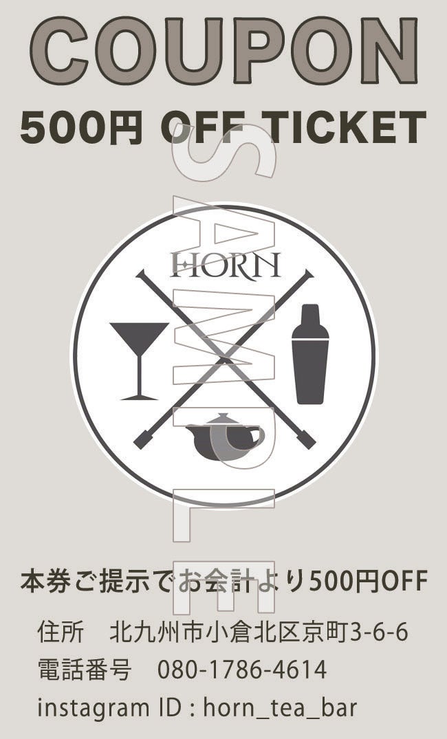 ◎ホルンチケット 【お店で使用できるチケットです。ティーハウス、バー問わずご利用可能です1枚500円綴りでお送りします。】