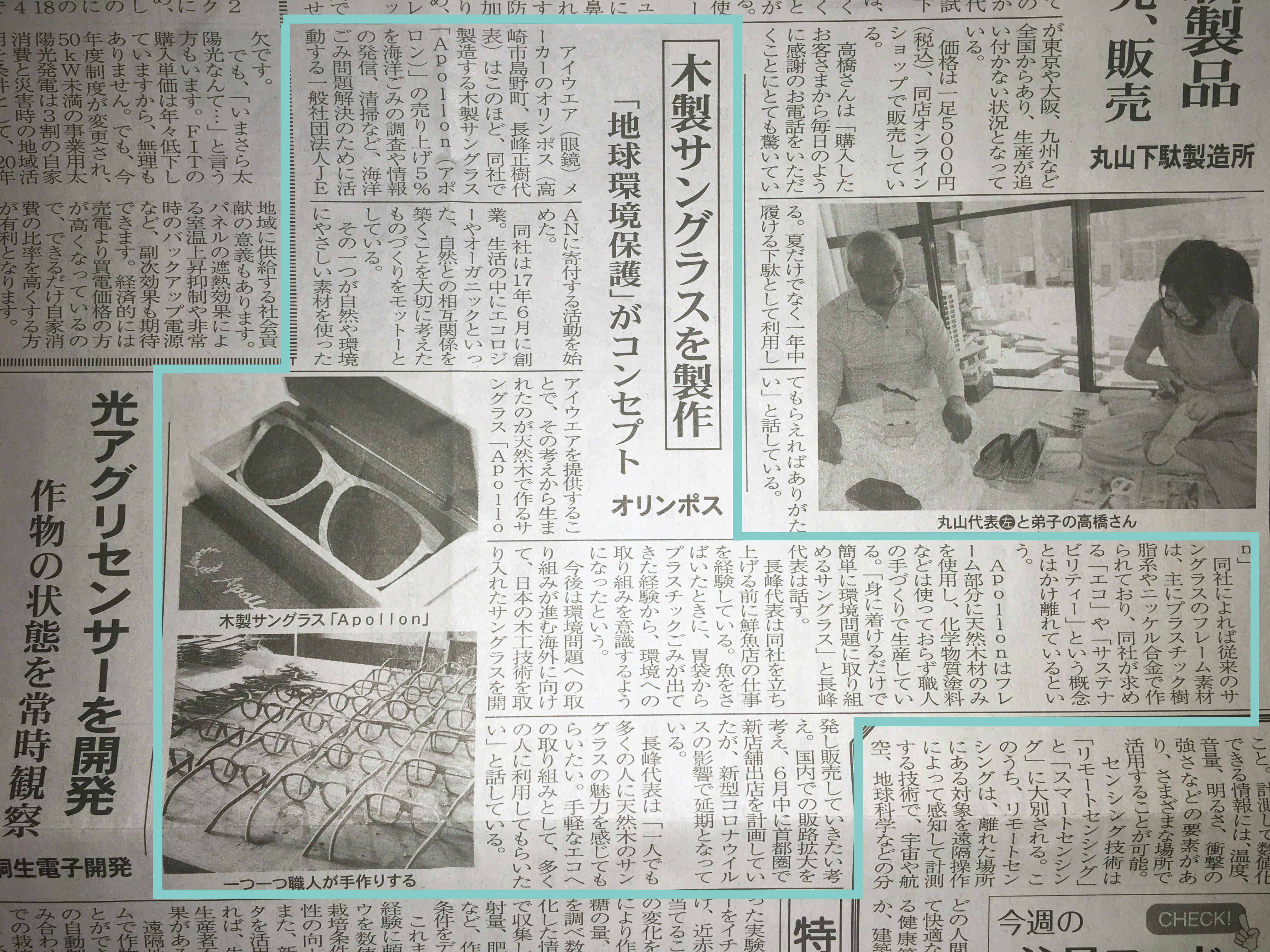 2020/07/10 16:33今回のプロジェクトが地元の経済新聞社に目が留まりました。取材を受けさせて頂き、海洋プラスチックへの取り組みをお話ししたところ、経済新聞に掲載して頂きました!誰かが、Apollon(アポロン)を通じて、海洋ごみへの関心が芽生えるきっかけにかもしれない。小さなきっかけの種をいろいろな形で撒いていけたらと思っています。 もっと見る