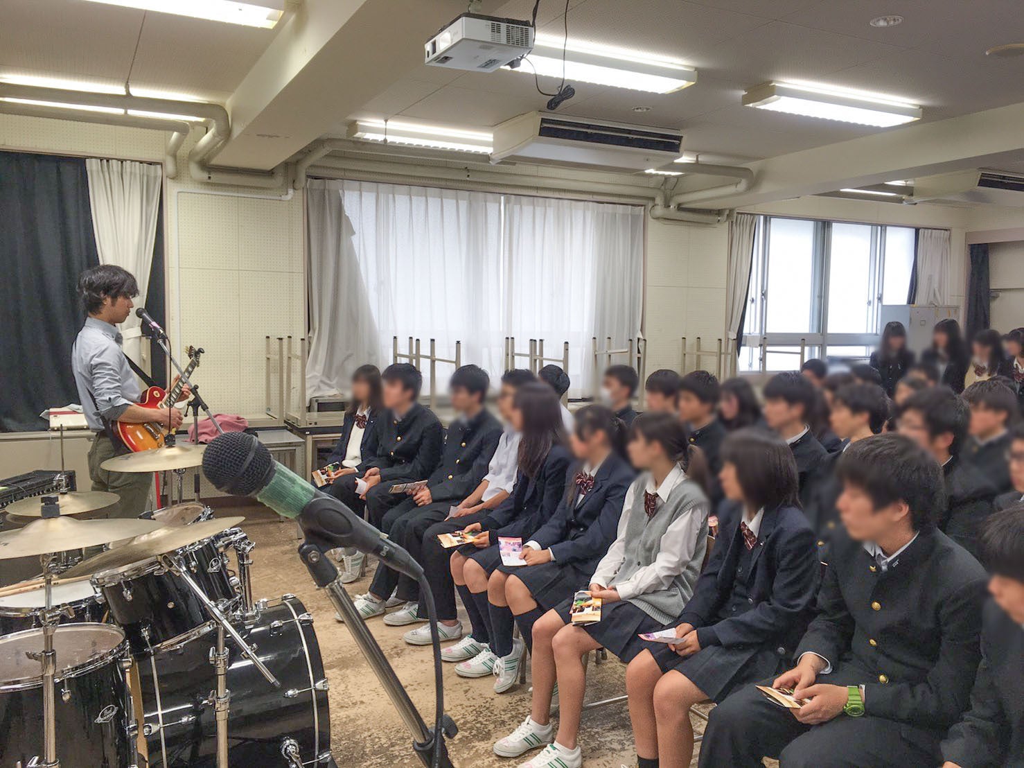 毎年春には近隣の高校の軽音部を訪問し、無料楽器セミナーを開催。楽器を始めたばかりの高校生たちに音楽・バンドの楽しさを広めています。セミナーはいつも30人以上の生徒さんが集まって大賑わい。オトキチのスタッフが機材の特徴や演奏法の基礎を楽しく解説します。楽器を始めてすぐにしっかりとした音を聴く事で、目標を高く持つきっかけになればと思っています。