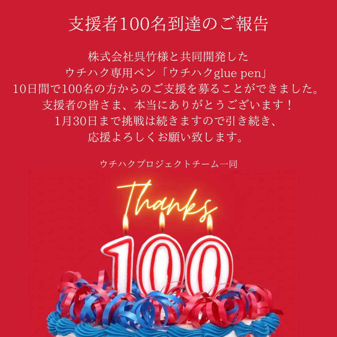 おかげさまで10日間で100名の方からご支援を募ることができました!