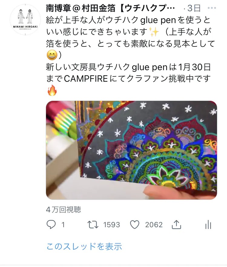 ウチハクglue penの使い方動画をTwitterにアップしたところ、なんと4日間で40,000回視聴されました!