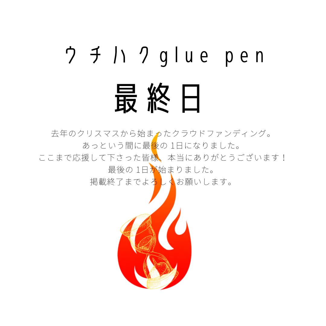 おかげさまでウチハクglue penクラウドファンディング、最終日を迎えることができました!