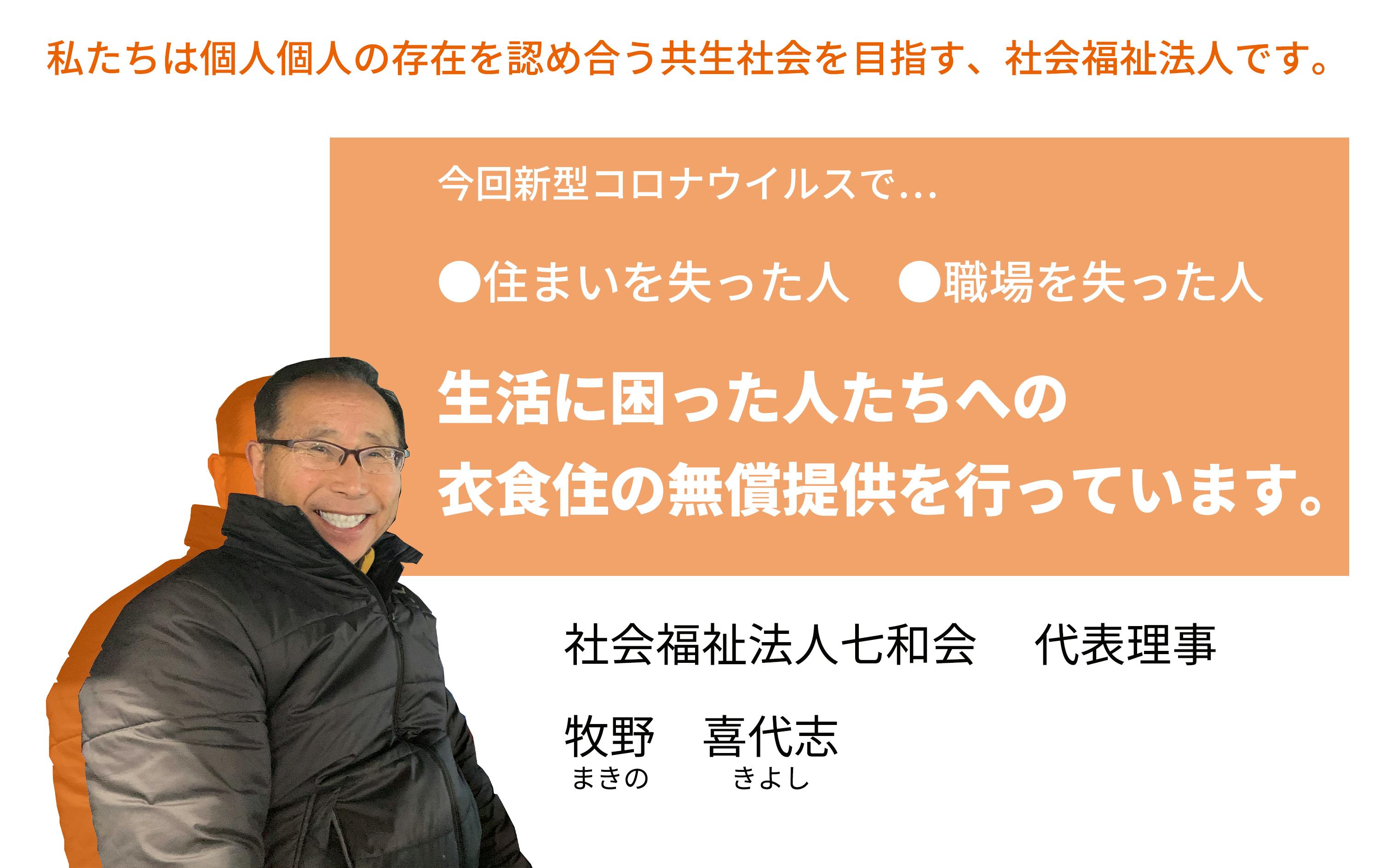 私は社会福祉法⼈七和会で理事⻑をしております牧野喜代志と申します。