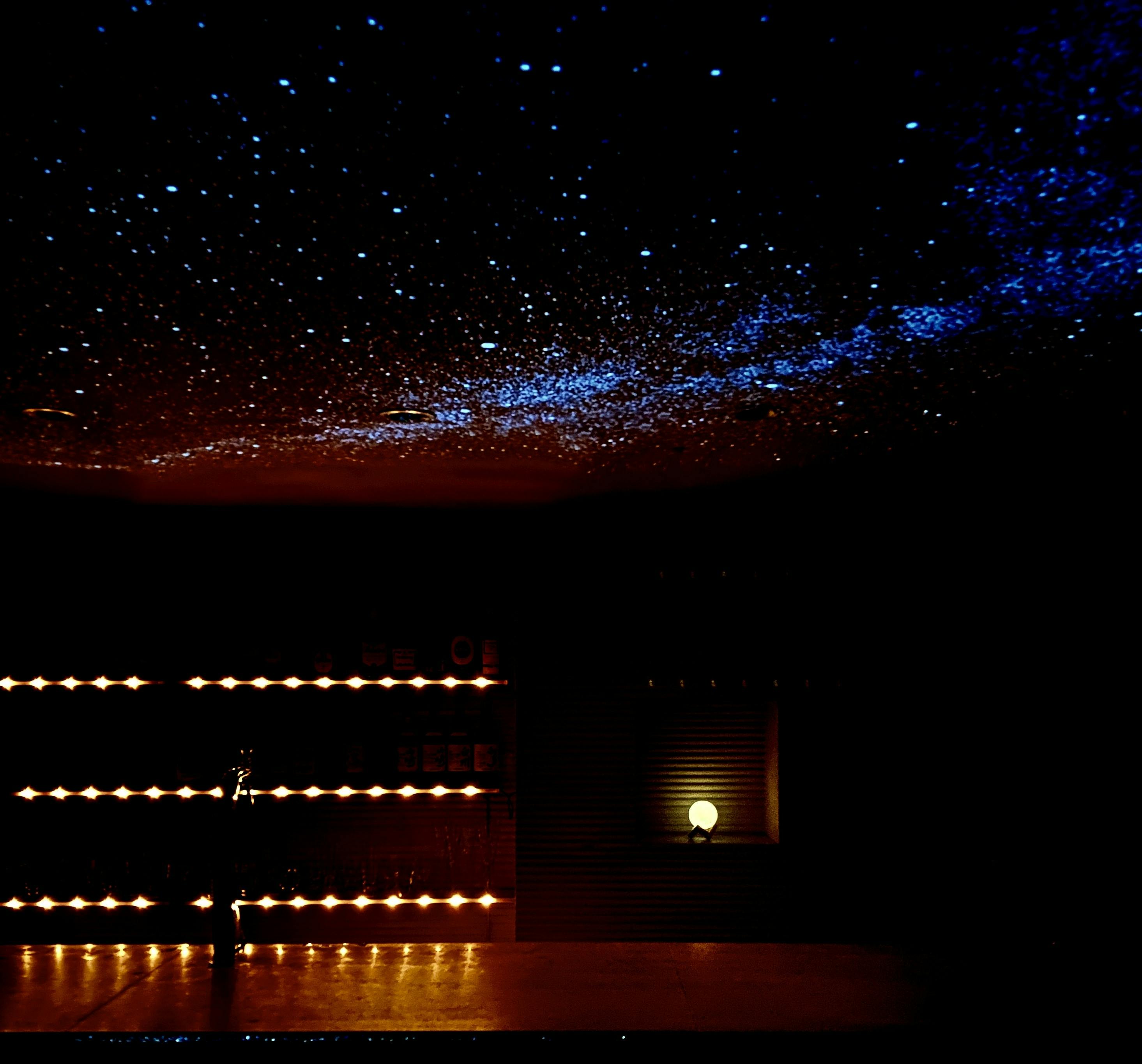 これにより500万個の星空に包まれ、幻想的な空間の中、美味しいお酒を楽しめる、当初思い描いていた、「お客様に感動していただけるお店」となりました。