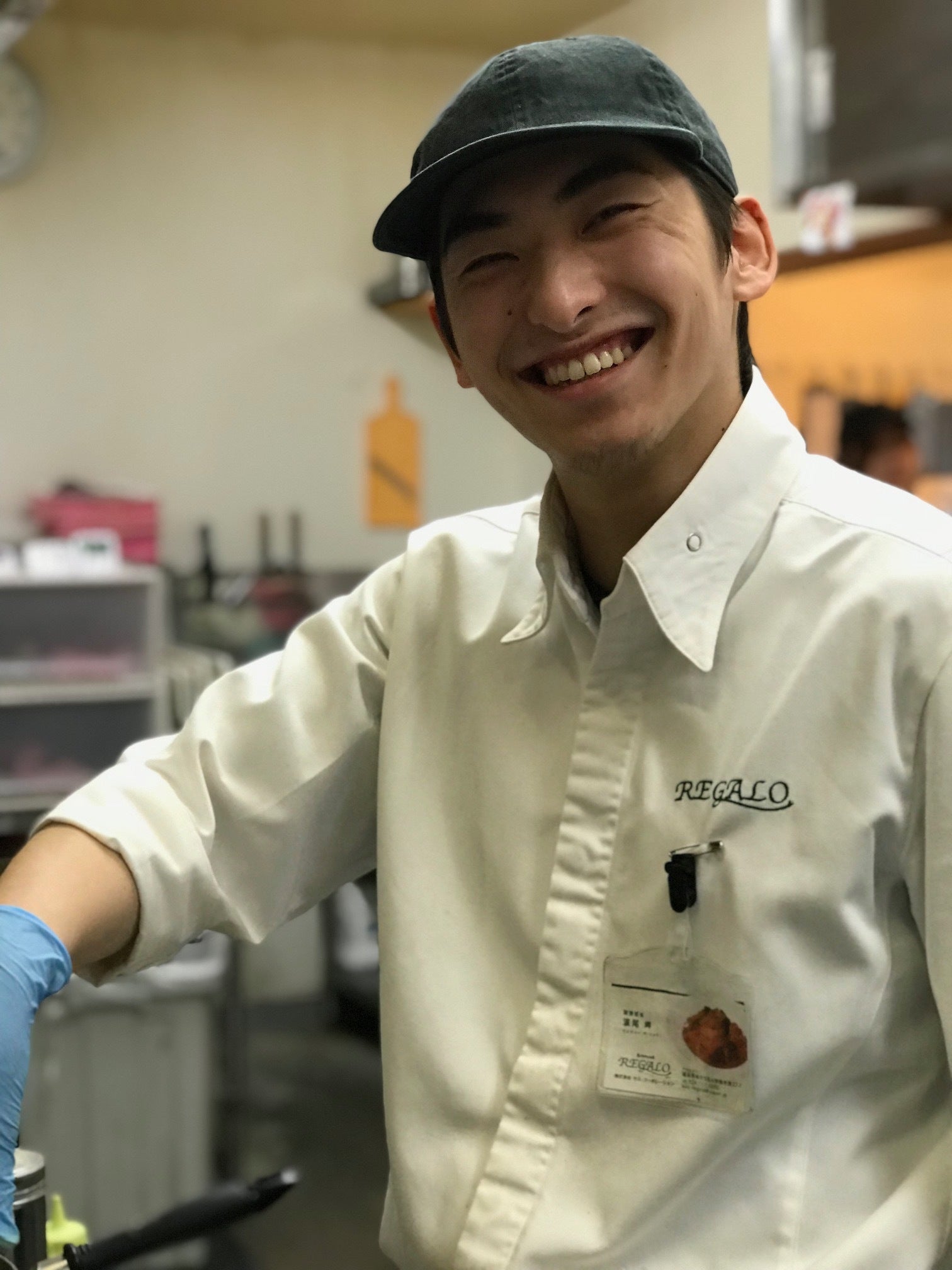 1998年7月生まれ。幼少期から祖母の居酒屋などで家庭料理や一品料理など、食に触れながら育つ。高校卒業後、地元企業に就職したものの、食の楽しさが忘れられず、同店に就職。パスタの魅力に引き込まれREGALO本店の厨房を任さる。スタッフの育成から商品開発とお客様に喜ばれるお店作りに奮闘中。