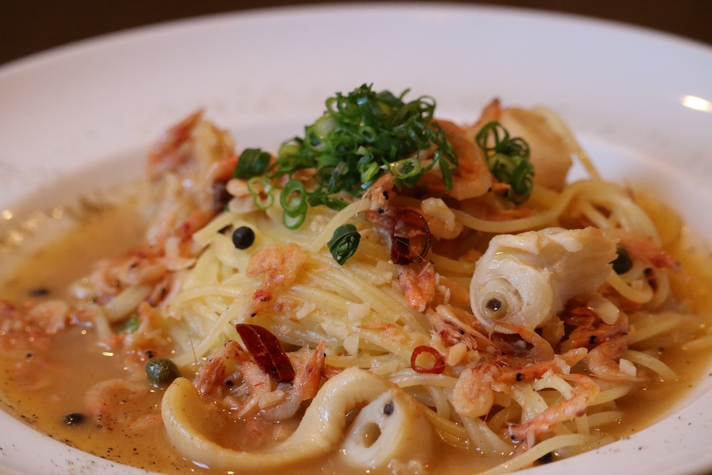 乾麺では味わえ無い、「生パスタ」のモチモチ感。また店内で仕込む生パスタ専用のソースも6種類から。地元野菜から旬の食材まで幅広く使用しております。