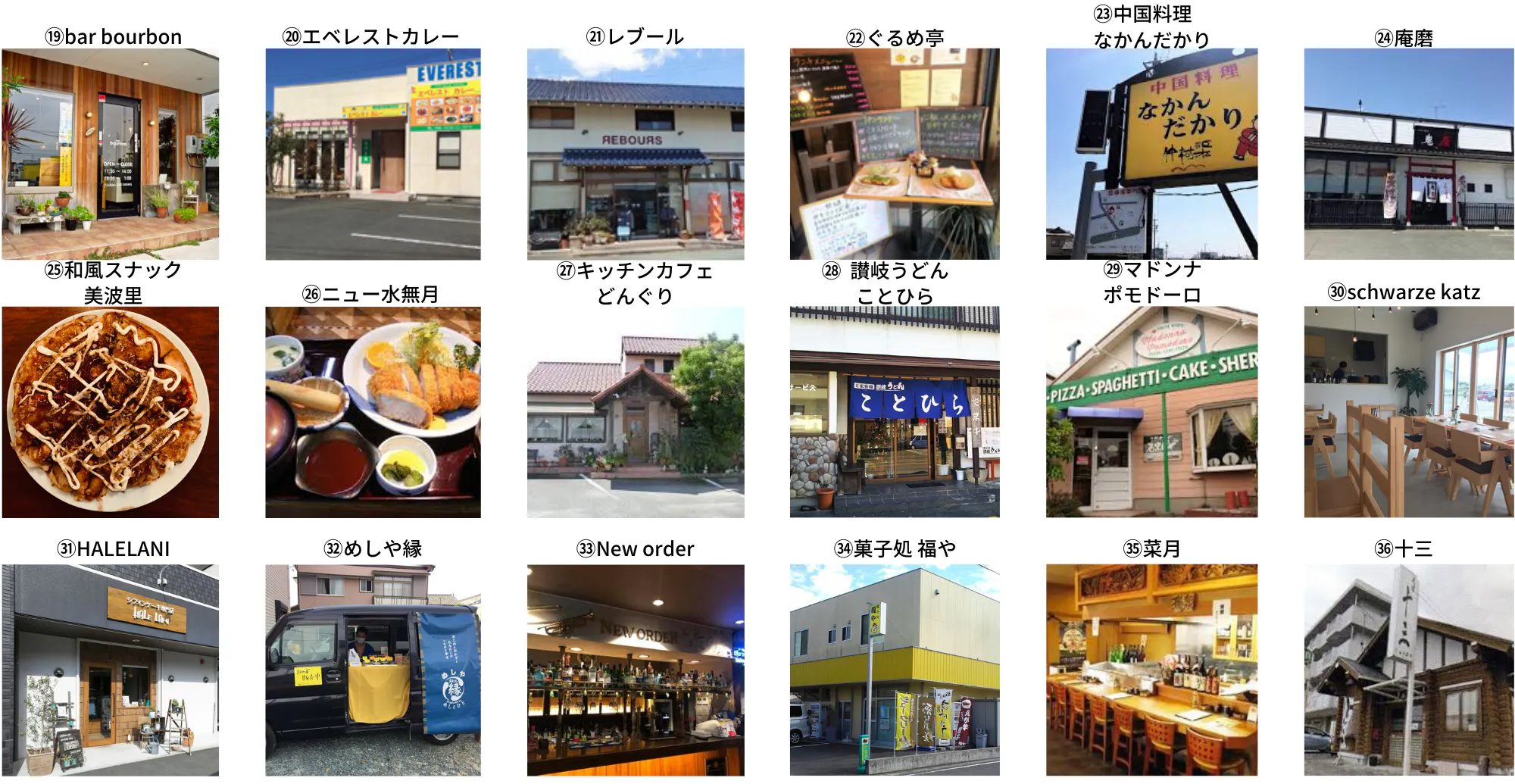 ㉚schwarze katz ㉛HALELANI ㉜めしや縁㉝New order㉞菓子処 福や㉟菜月