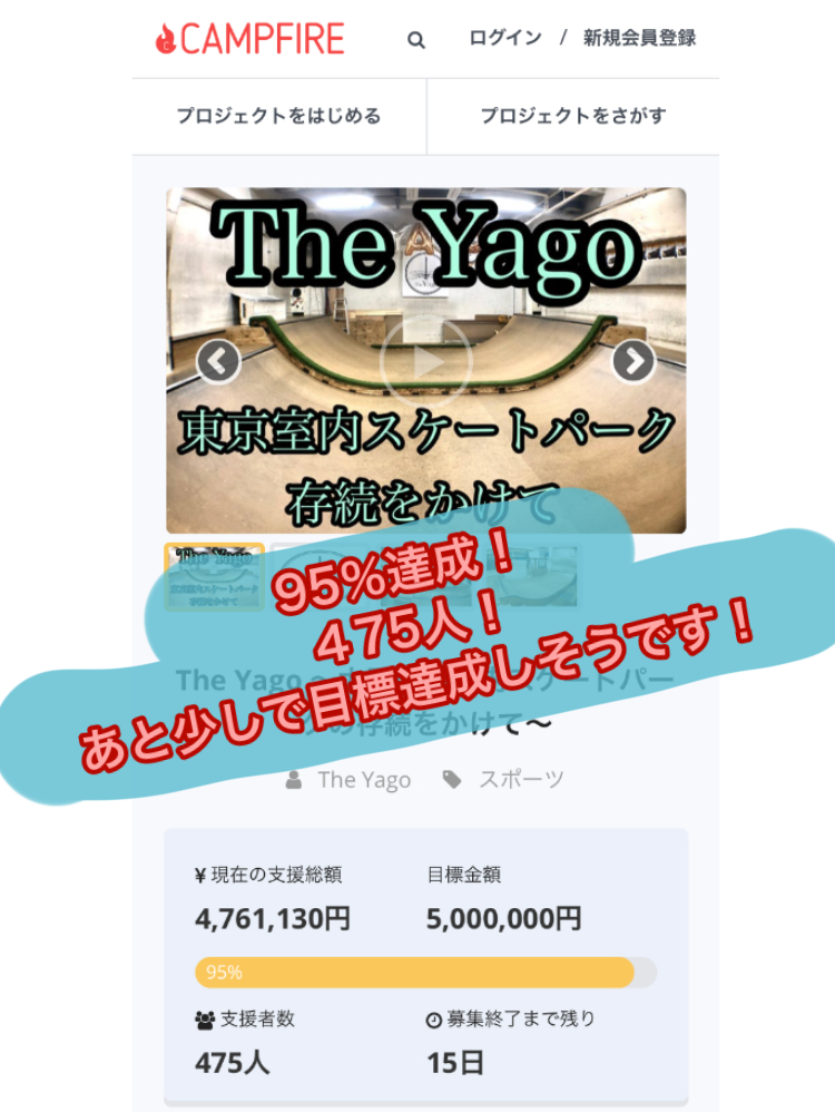 2020/06/29 03:46ついに目標を達成いたしました。皆様のご支援、応援メッセージ、本当にたくさんありがとうございます。心よりお礼申し上げます。本日でこのプロジェクトは終了いたしますが、このプロジェクトを始めて約2ヶ月あらためて皆様のThe Yagoに対する愛が伝わってきました。自分でも今でも信じられませんが友達の言葉を借りると「最高の奇跡が起きた!」と自分でも思います。一個人のスケートパークがこれほどまで皆様に愛されていことを誇りに思います。感動で涙が止まりません。そんな皆様の愛に応えられるようにこの厳しい時期をなんとしてでも乗り越えて、より長くこのパークをこの形このスタイルで存続し続けたいと思います。今後ともよろしくお願いいたします。The Yago馬場 もっと見る