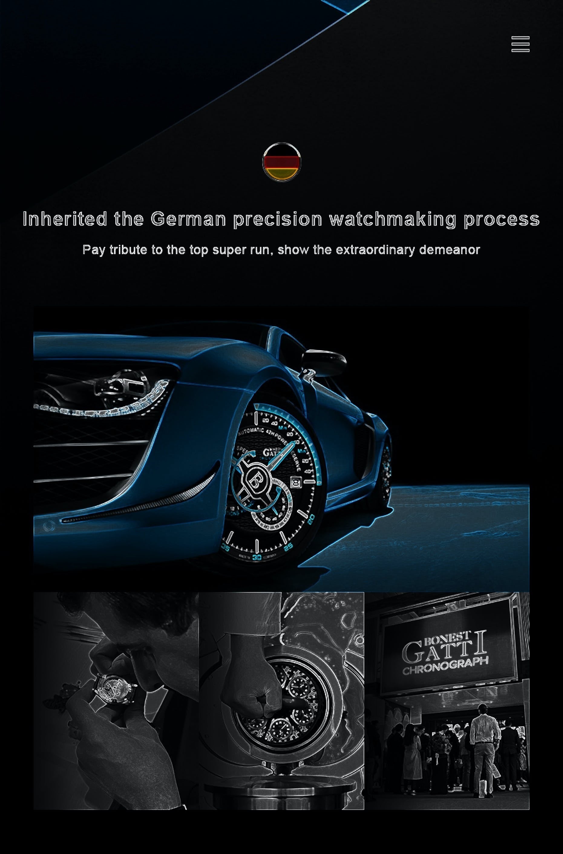 「時計製造」=機械と言う固定概念を捨て去りました。私たちは、自動車学者や時計学者と協力して「GATTI」専門の開発チームを編成し既存のテクノロジーを使用し、発明ではなくイノベーションを起こせるような試行錯誤を日夜続けてきました。