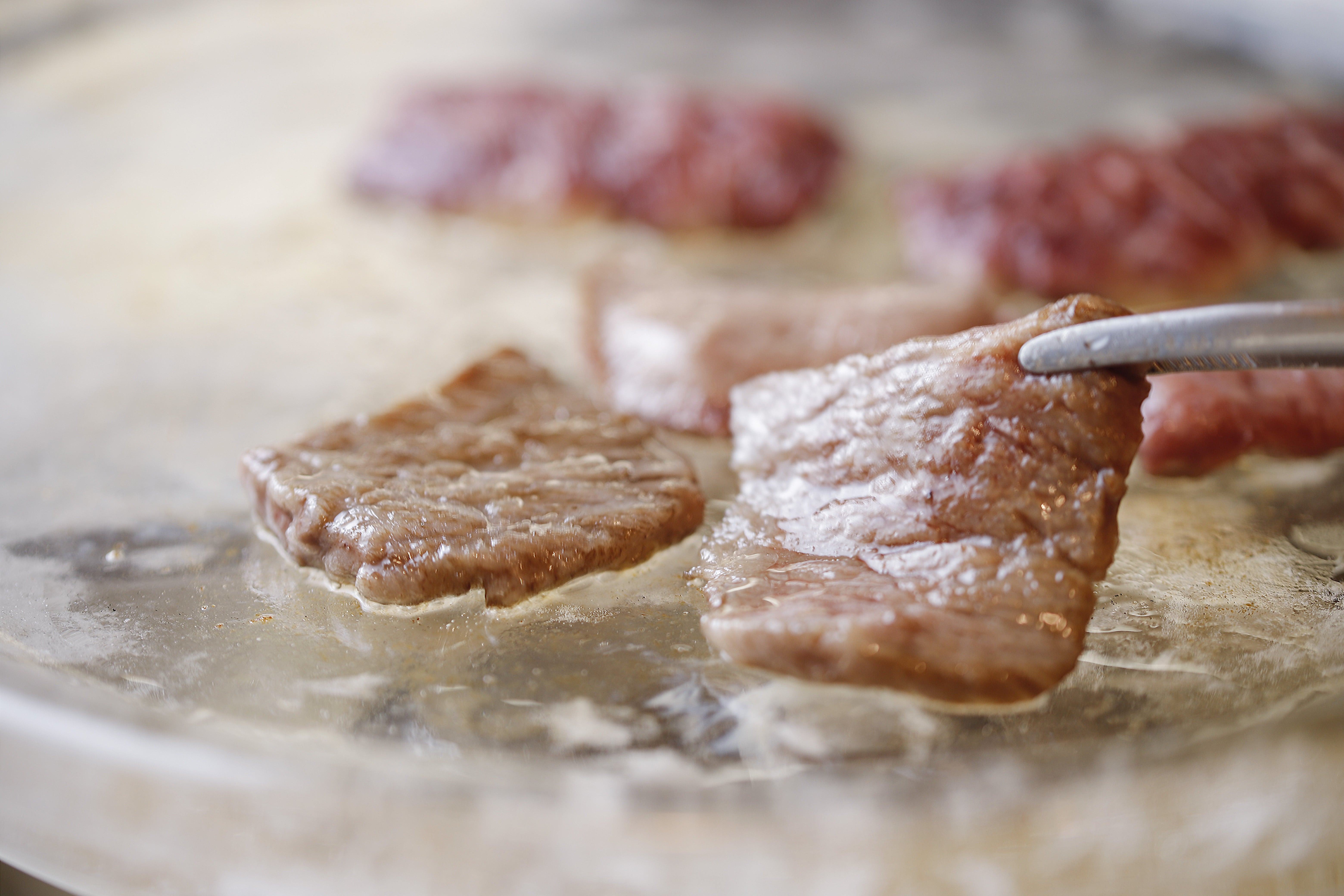 水晶板で焼く立ち食い焼肉屋になります。席数は8席ほどの小さいお店です。お肉は1枚30円から1枚ずつ注文が可能です。国産黒毛和牛を使用していまして、タレよりも塩とわさびで食べてもらう事をおすすめしています。わさびは静岡の老舗わさび屋「田丸屋」を使用。肉とわさびと食べる方も多いです。