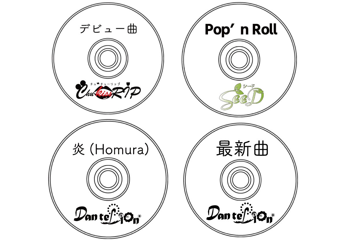 ・現在作曲中のDan te Lion 未発表 最新曲と、5,000円コースのCD-R全3種類(計4枚)のセットになります(収録曲は下記)