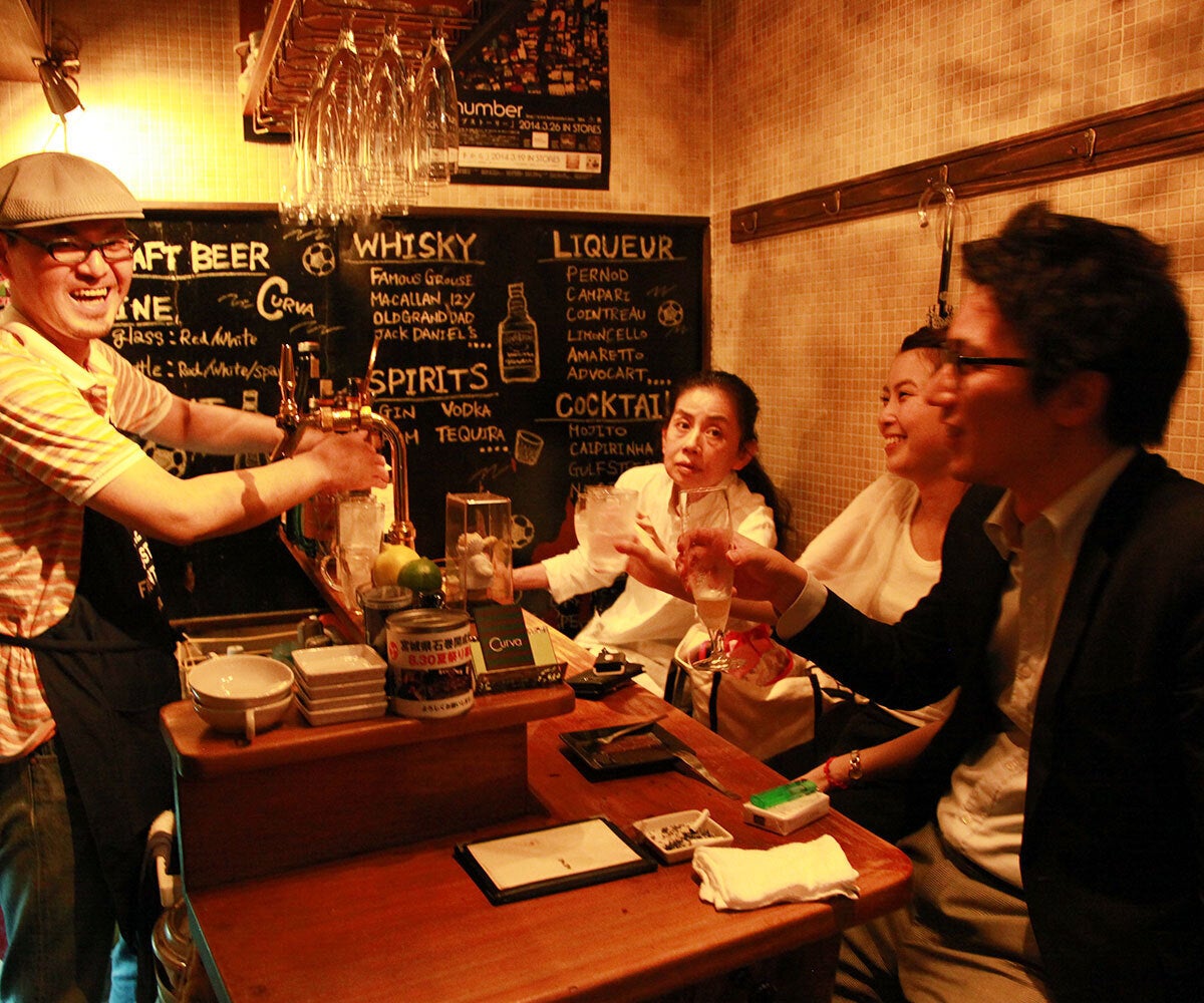 狭いお店だからこそ、カウンター越しにお客さんとのコミュニケーションを大切に、隣に座ればお客さん同士もすぐに打ち解ける、人と人とが陽気なお酒とお食事で繋がる場所なのです。