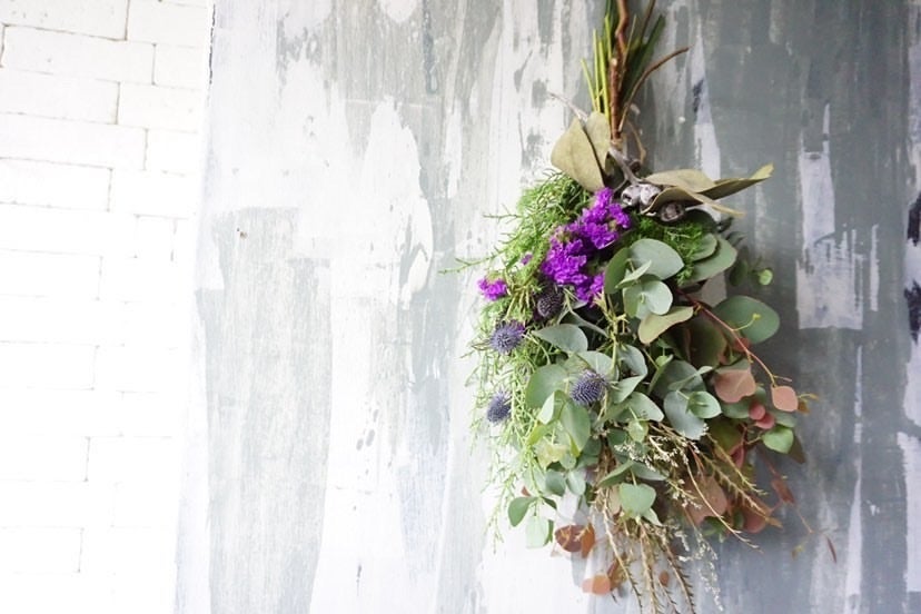 スワッグは、リースと同じように、壁やドアなどに飾るオシャレなインテリアなのですが、リースとは違って、ブーケや花束のようなかたちをしていますので、大切な人への贈り物やお祝いのギフトにもピッタリなアイテムです。
