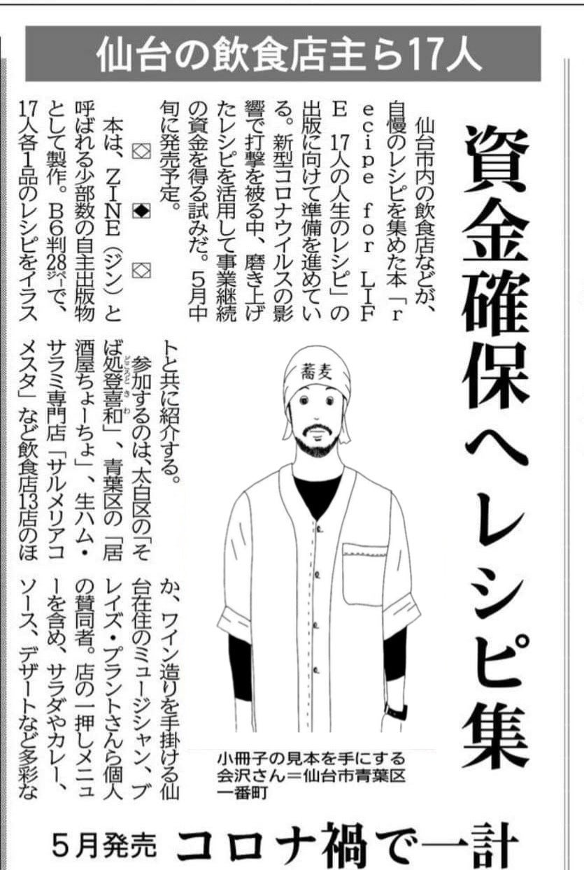 東北のブロック紙でもある河北新報の報道記事にプロジェクトの取材記事が載りました。※写真は恥ずかしいのでイラスト差し替えました(笑)我々の取り組みを後押ししてくださる地域の皆様、そして1番の応援者であるご支援いただいた皆様に感謝します。この危機を前向きな気持ちを持って乗り越える我々の姿が、皆様の勇気にお役に立てれば幸いです。プロジェクト発起人