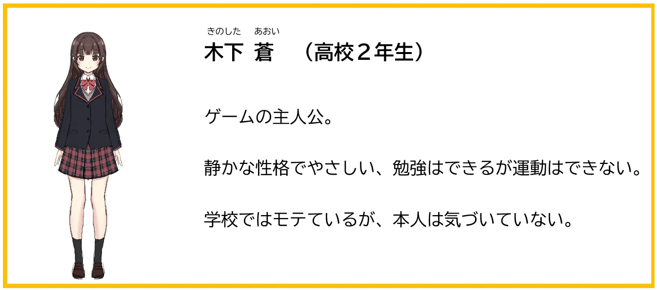 現段階では蒼編と七奈編に操作パートを分ける予定があり、