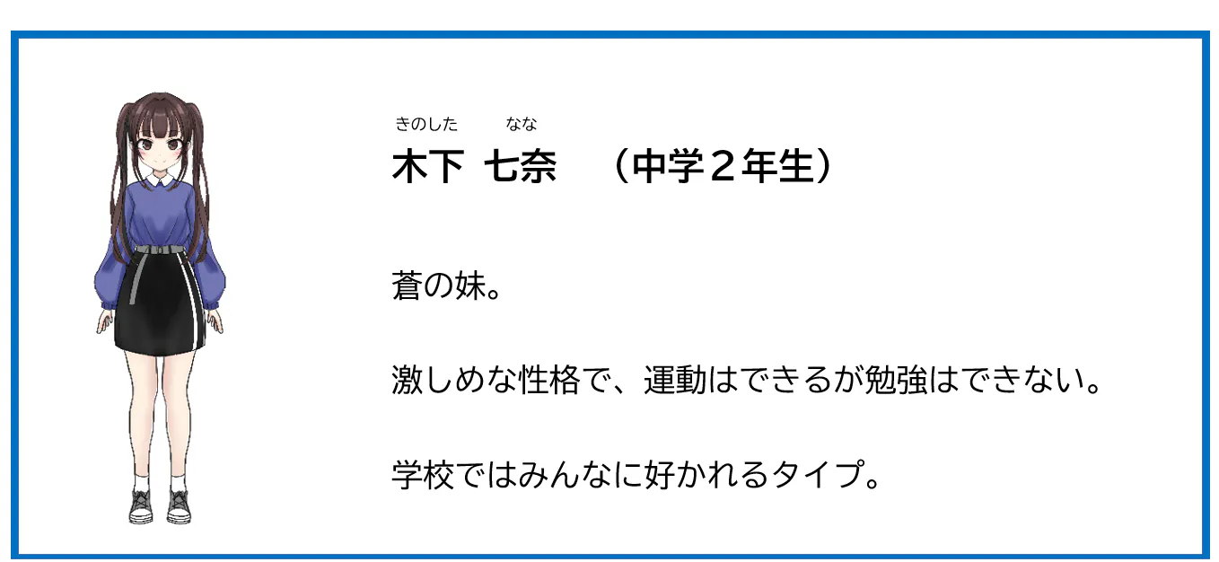 事故で父と妹の七奈を亡くした少女・蒼。