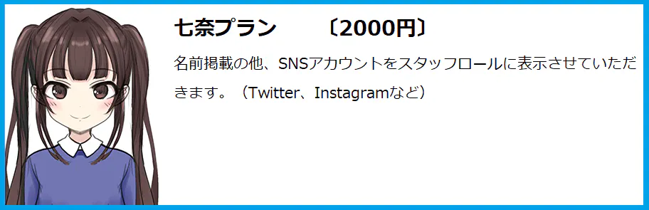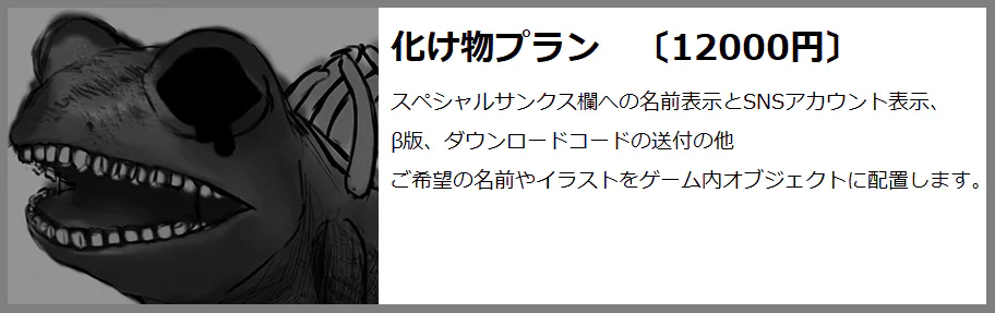 ※化け物プランのみ・・・表示する名前やイラストが著作権に引っかかるものや企業の広告だった場合はお断りさせていただきます。