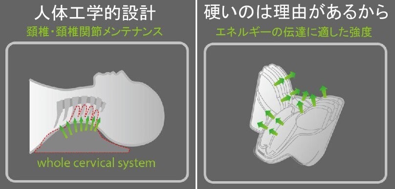 最初はやや硬く感じるかもしれませんが、使用を続ける事で硬さに慣れ首の頚椎ケアを効果的に行っていきます。