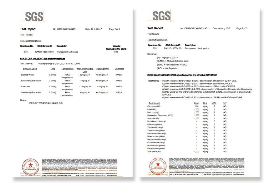 isoneckはSGSの安全性テストに合格された素材のみで製品化をしています。