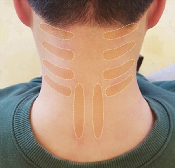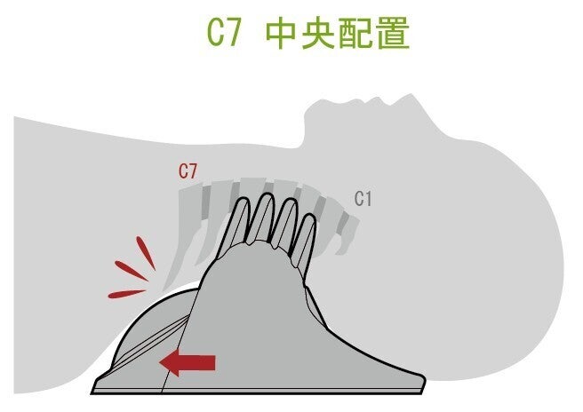 図のC7の方へ配置する事で胸椎近くに接触します。首と肩を同時にケアしていきます。