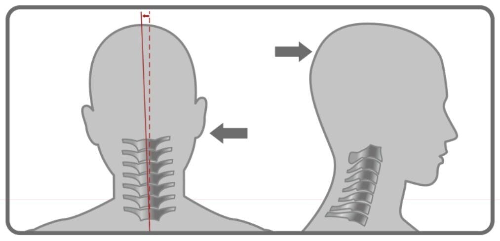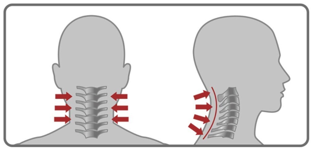 isoneckは人体の解剖学構造に適した人間工学に基づいた設計により、首の前後変位だけでなく、左右の変位にも効果的なケアが出来ます。