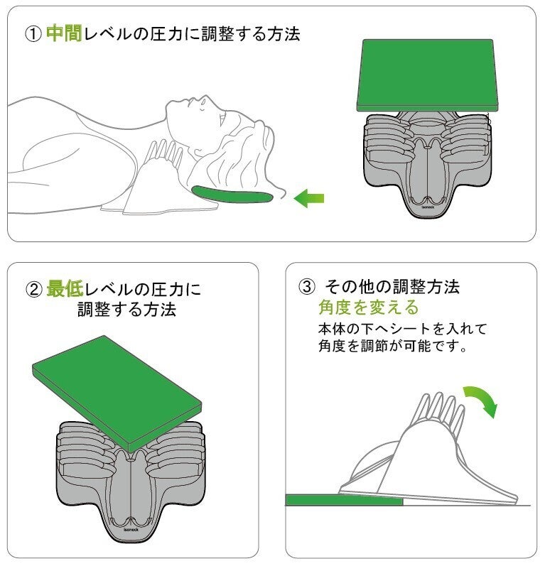 痛みを強く感じる場合は、同梱しているisoneckパッドを頭の下に敷いてご使用下さい。