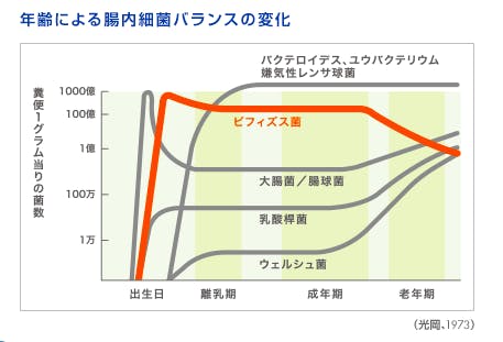 高齢になるについれて腸内のビフィズス菌は減少していきます⤵︎