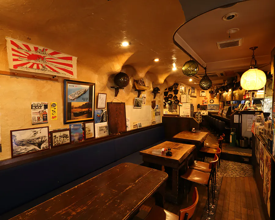 軍港横須賀をイメージした居酒屋とでもいえばいいのでしょうか。開国以来の海軍および、現在の海上自衛隊にまつわる品々で装飾されています。